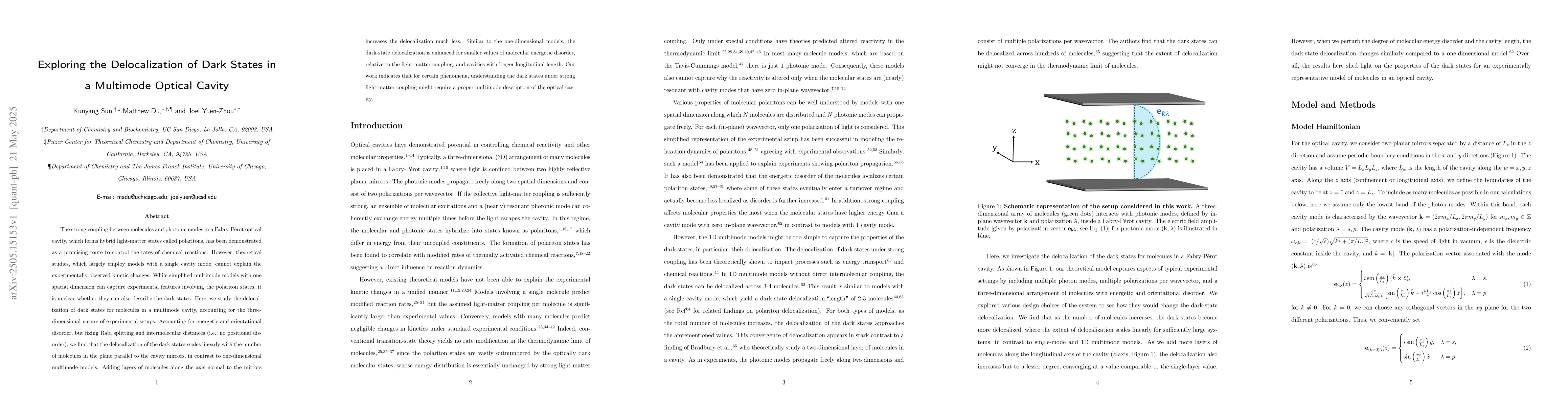Researchers studied how dark states in molecules interact with a multimode optical cavity, finding that delocalization scales linearly with the number of molecules parallel to the cavity mirrors.