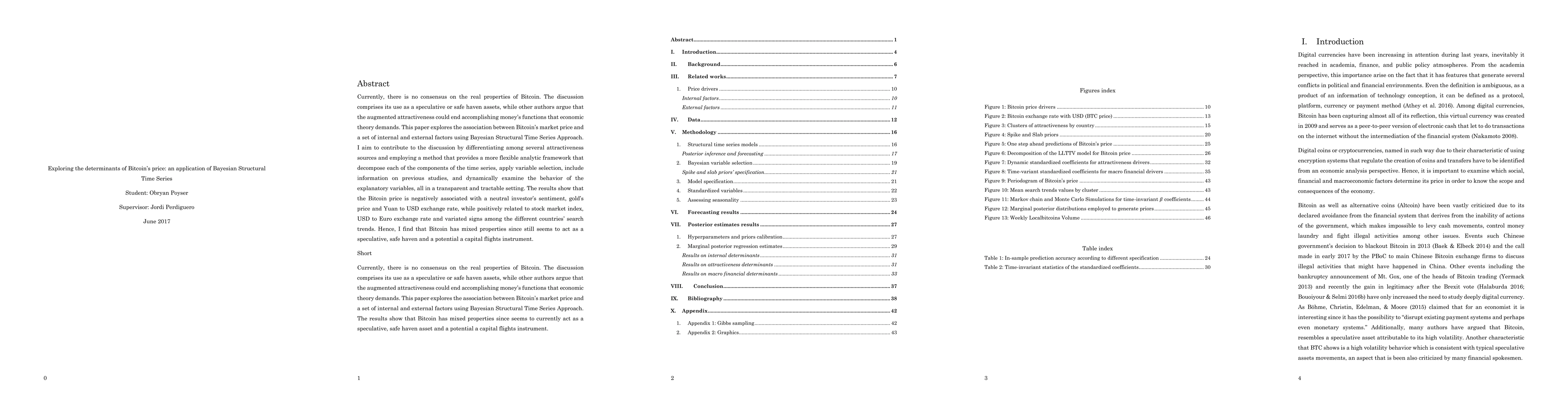 Currently, there is no consensus on the real properties of Bitcoin. The discussion comprises its use as a speculative or safe haven assets, while other authors argue that the augmented attractiveness could end accomplishing money's functions that economic theory demands. This paper explores the association between Bitcoin's market price and a set of internal and external factors using Bayesian Structural Time Series Approach. I aim to contribute to the discussion by differentiating among several attractiveness sources and employing a method that provides a more flexible analytic framework that decompose each of the components of the time series, apply variable selection, include information on previous studies, and dynamically examine the behavior of the explanatory variables, all in a transparent and tractable setting. The results show that the Bitcoin price is negatively associated with a neutral investor's sentiment, gold's price and Yuan to USD exchange rate, while positively related to stock market index, USD to Euro exchange rate and variated signs among the different countries' search trends. Hence, I find that Bitcoin has mixed properties since still seems to act as a speculative, safe haven and a potential a capital flights instrument.