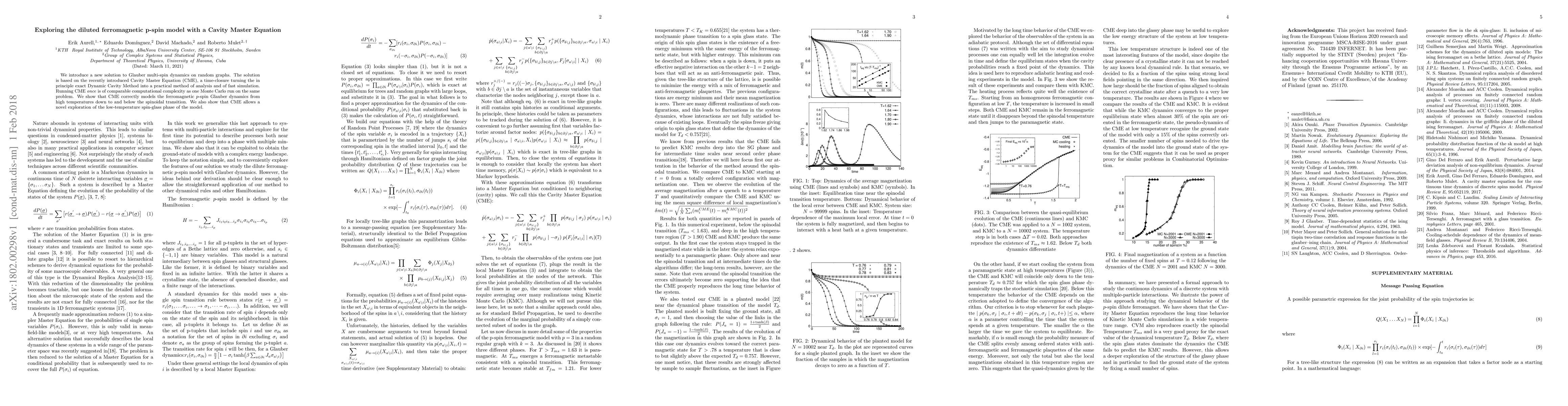We introduce a new solution to Glauber multi-spin dynamics on random graphs. The solution is based on the recently introduced Cavity Master Equation (CME), a time-closure turning the in principle exact Dynamic Cavity Method into a practical method of analysis and of fast simulation. Running CME once is of comparable computational complexity as one Monte Carlo run on the same problem. We show that CME correctly models the ferromagnetic $p$-spin Glauber dynamics from high temperatures down to and below the spinoidal transition. We also show that CME allows a novel exploration of the low-temperature spin-glass phase of the model.