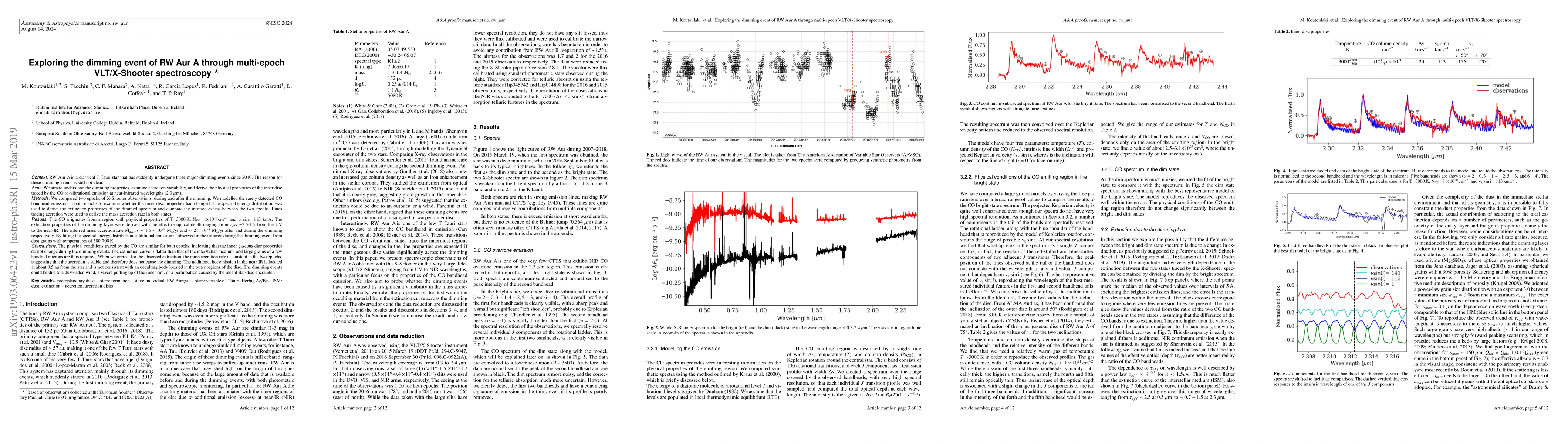 The research utilizes VLT/X-Shooter spectroscopy to study RW Aur A's dimming events, a Classical T Tauri Star. Findings reveal the inner disc's CO properties remain stable during dimming, with mass accretion rates also consistent. Additional hot IR emission suggests a dust-laden wind, inner rim perturbation, or encounter with another star as potential dimming causes.