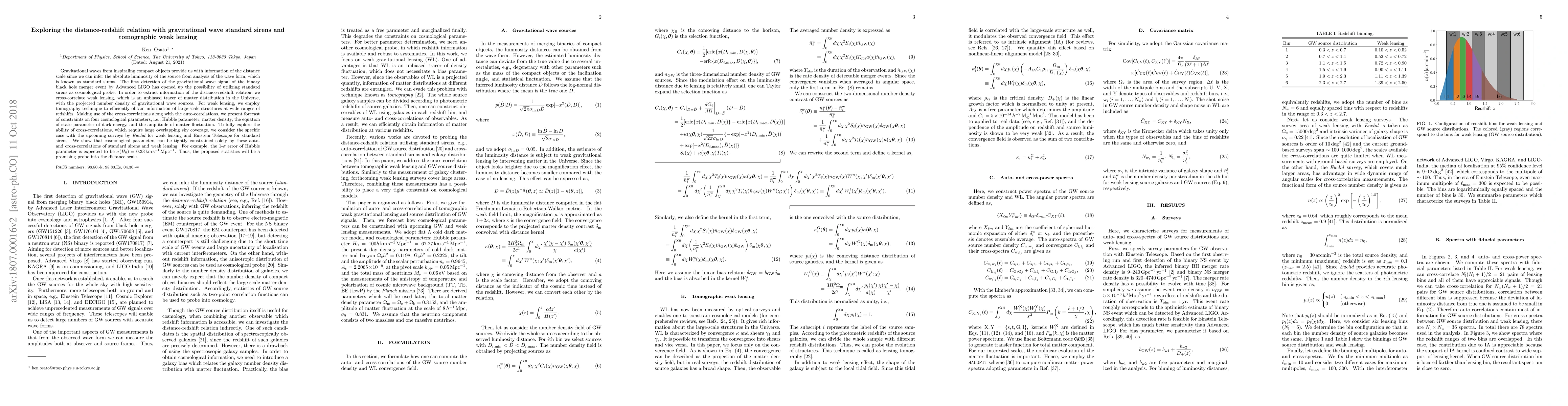 This paper explores the distance-redshift relation using gravitational wave standard sirens and tomographic weak lensing. By cross-correlating gravitational wave detections with weak lensing data from upcoming surveys, it forecasts tight constraints on cosmological parameters, achieving a $1\text{-}\sigma$ error of $0.33 \, \mathrm{km} \, \mathrm{s}^{-1} \, \mathrm{Mpc}^{-1}$ for the Hubble parameter.