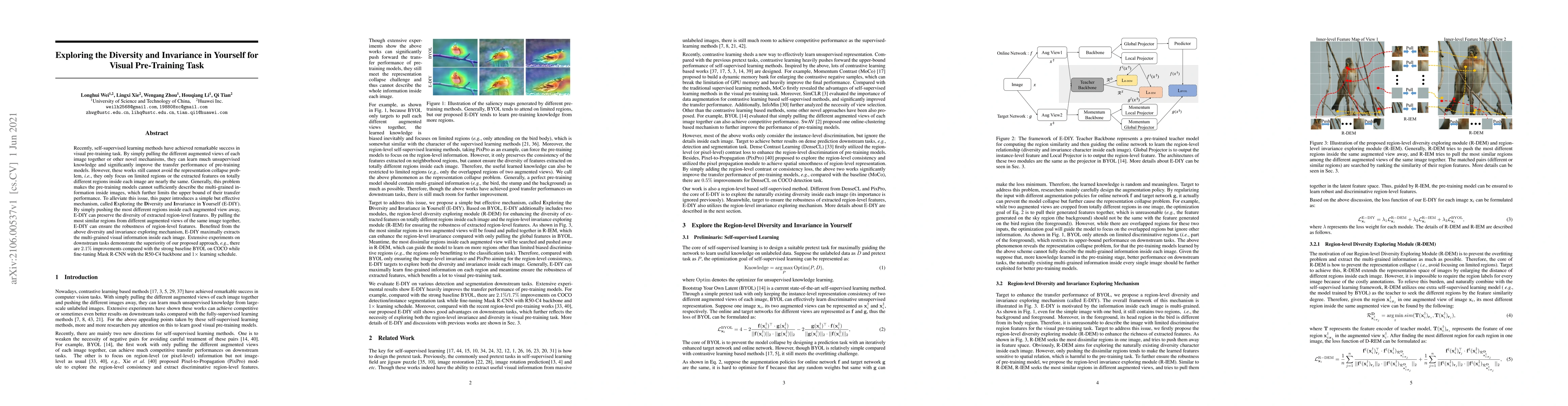 A new self-supervised learning method called Exploring Diversity and Invariance in Yourself (E-DIY) improves visual pre-training task performance by preserving diversity of extracted features within images.