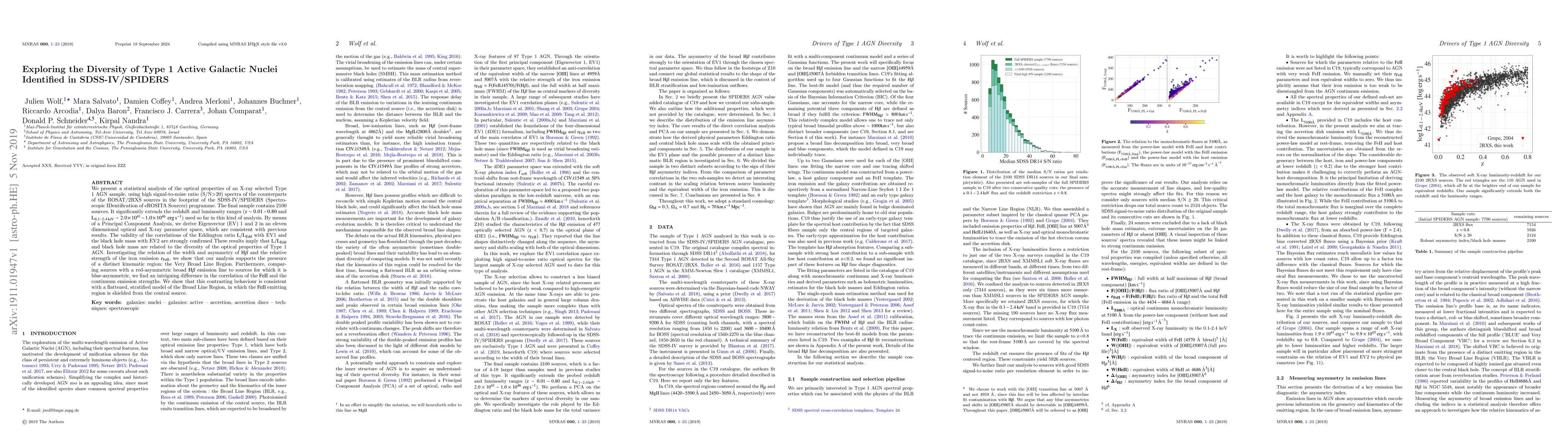 This study analyzes optical properties of 2100 X-ray selected Type 1 Active Galactic Nuclei, revealing a diverse kinematic region and correlations between Eddington ratio, black hole mass, and emission line characteristics.