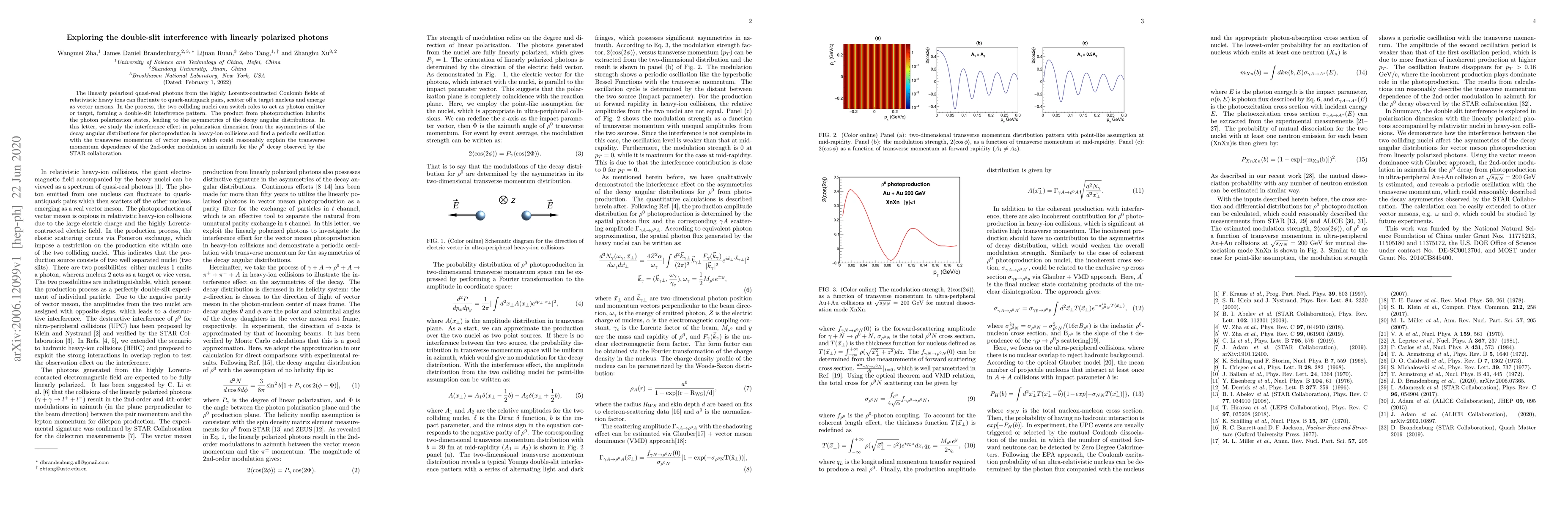This research explores double-slit interference using linearly polarized photons from relativistic heavy-ion collisions, finding a periodic oscillation with vector meson transverse momentum. This explains the transverse momentum dependence of azimuthal modulation in $ ho^{0}$ decay, observed by the STAR collaboration.
