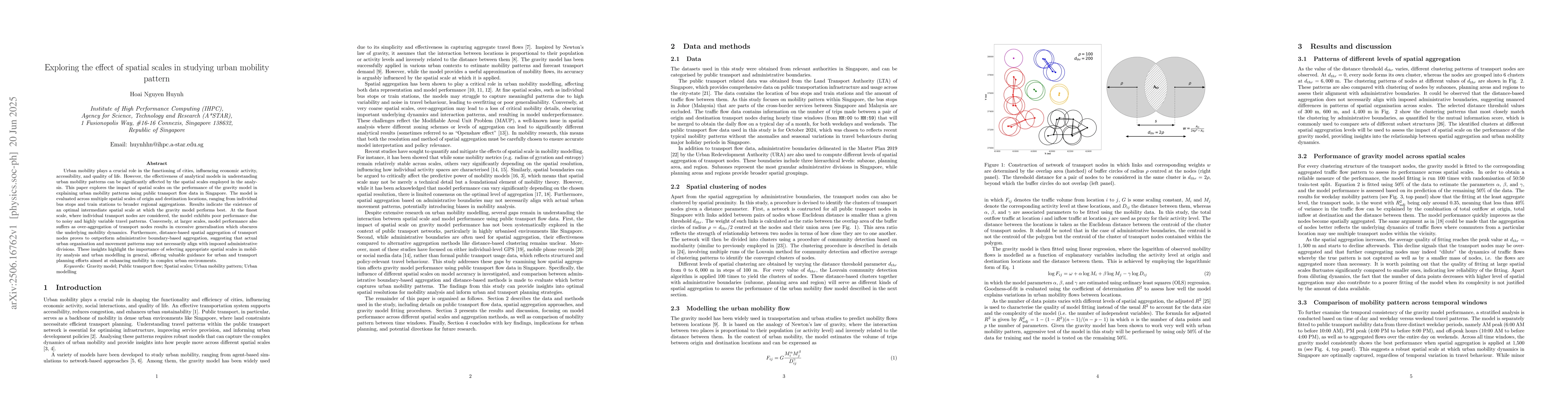 This research examines how different spatial scales affect the accuracy of the gravity model in understanding urban mobility in Singapore. It finds an optimal intermediate scale for the best model performance, with finer scales causing noise and larger scales leading to over-generalization. Distance-based aggregation outperforms administrative boundaries, emphasizing the importance of selecting appropriate spatial scales in urban mobility studies and planning.