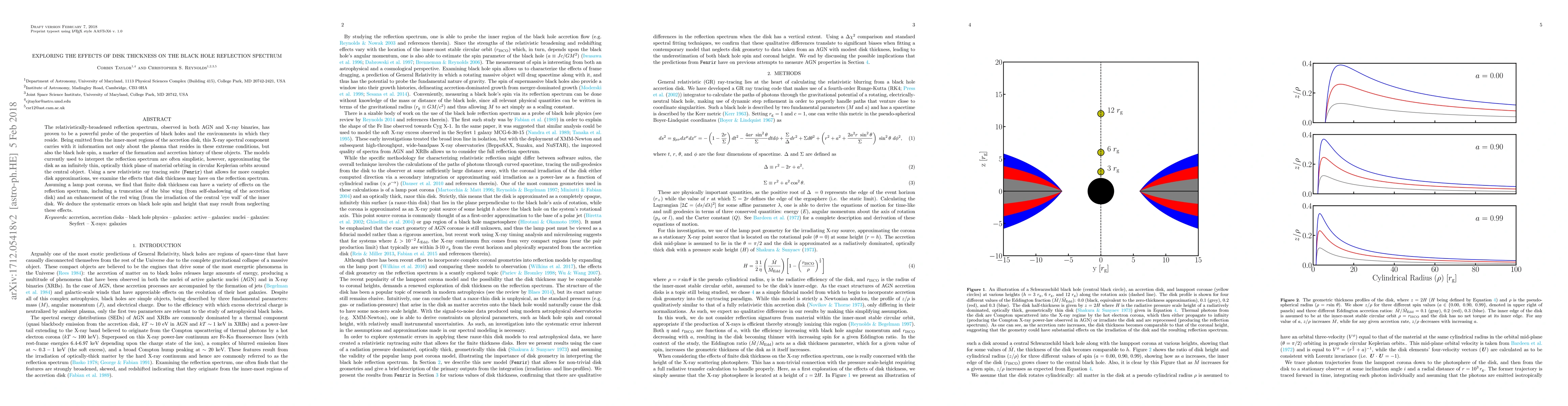 This research uses a new relativistic ray tracing suite (Fenrir) to explore how disk thickness impacts the black hole reflection spectrum. Findings suggest finite disk thickness can truncate the blue wing via self-shadowing and enhance the red wing via irradiation of the inner disk 'eye wall', potentially causing systematic errors in black hole spin and height estimations if neglected.