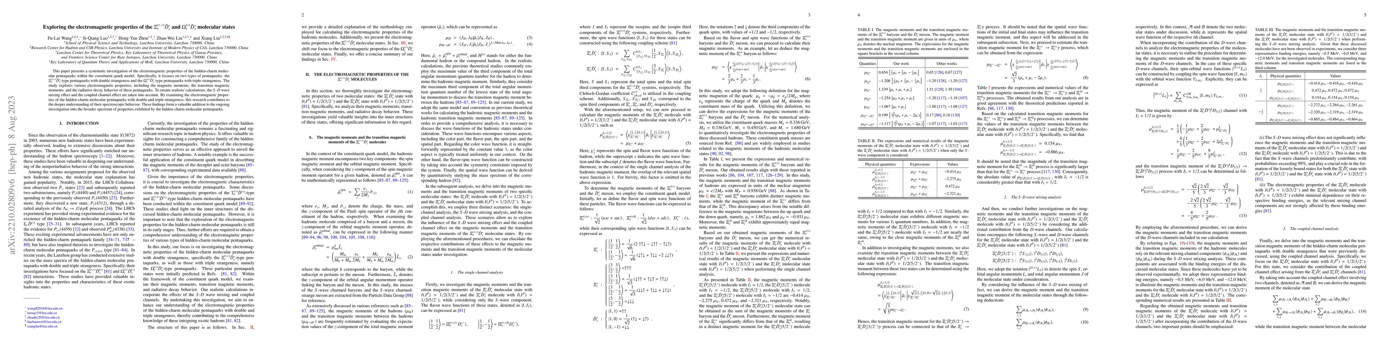 This paper investigates the electromagnetic properties of hidden-charm molecular pentaquarks, specifically $\Xi_c^{(\prime,*)} \bar{D}_s^*$ and $\Omega_c^{(*)}\bar D_s^*$, using the constituent quark model, focusing on magnetic moments, transition magnetic moments, and radiative decay behavior. The study accounts for $S$-$D$ wave mixing and coupled channel effects to enhance accuracy.