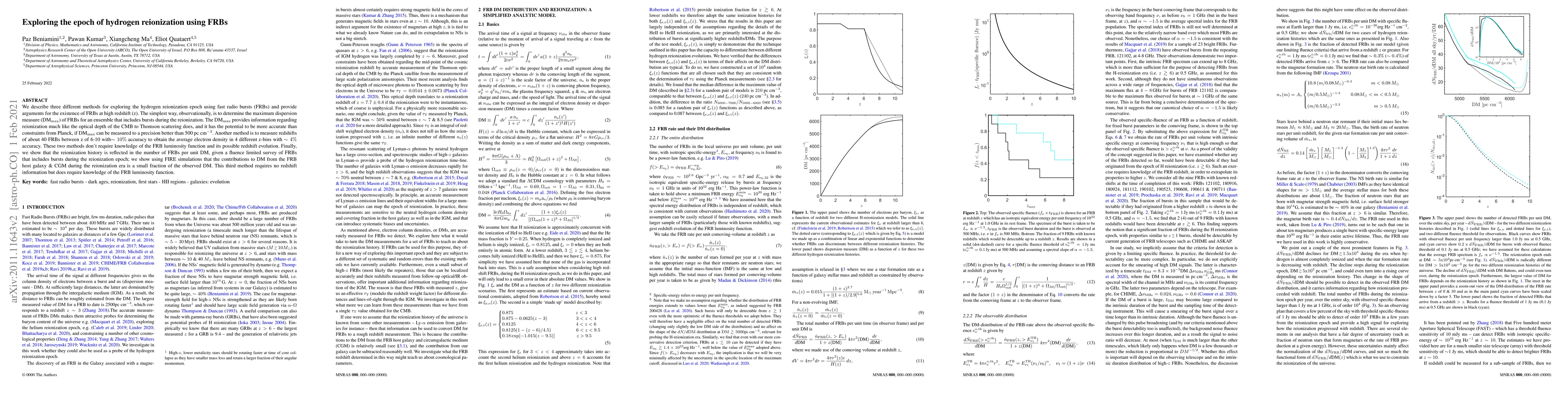 This paper explores three methods to investigate the hydrogen reionization epoch using fast radio bursts (FRBs): determining the maximum dispersion measure (DM$_{\rm max}$), measuring redshifts of FRBs to obtain average electron density, and analyzing FRB number per unit DM to infer reionization history. Each method offers unique insights, with the first two not requiring knowledge of FRB luminosity function.