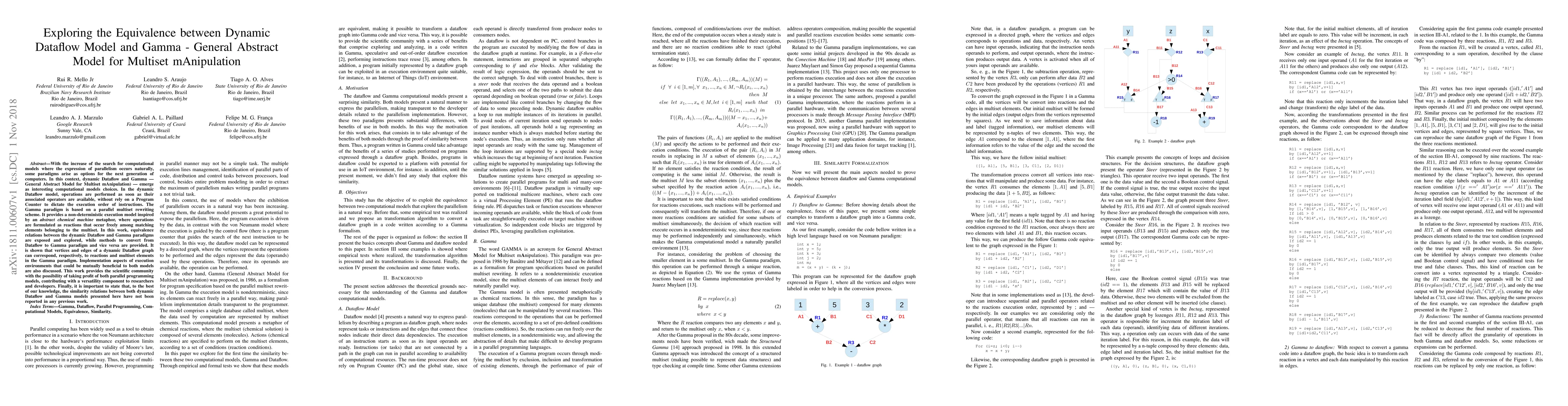 With the increase of the search for computational models where the expression of parallelism occurs naturally, some paradigms arise as options for the next generation of computers. In this context, dynamic Dataflow and Gamma - General Abstract Model for Multiset mAnipulation) - emerge as interesting computational models choices. In the dynamic Dataflow model, operations are performed as soon as their associated operators are available, without rely on a Program Counter to dictate the execution order of instructions. The Gamma paradigm is based on a parallel multiset rewriting scheme. It provides a non-deterministic execution model inspired by an abstract chemical machine metaphor, where operations are formulated as reactions that occur freely among matching elements belonging to the multiset. In this work, equivalence relations between the dynamic Dataflow and Gamma paradigms are exposed and explored, while methods to convert from Dataflow to Gamma paradigm and vice versa are provided. It is shown that vertices and edges of a dynamic Dataflow graph can correspond, respectively, to reactions and multiset elements in the Gamma paradigm. Implementation aspects of execution environments that could be mutually beneficial to both models are also discussed. This work provides the scientific community with the possibility of taking profit of both parallel programming models, contributing with a versatility component to researchers and developers. Finally, it is important to state that, to the best of our knowledge, the similarity relations between both dynamic Dataflow and Gamma models presented here have not been reported in any previous work.