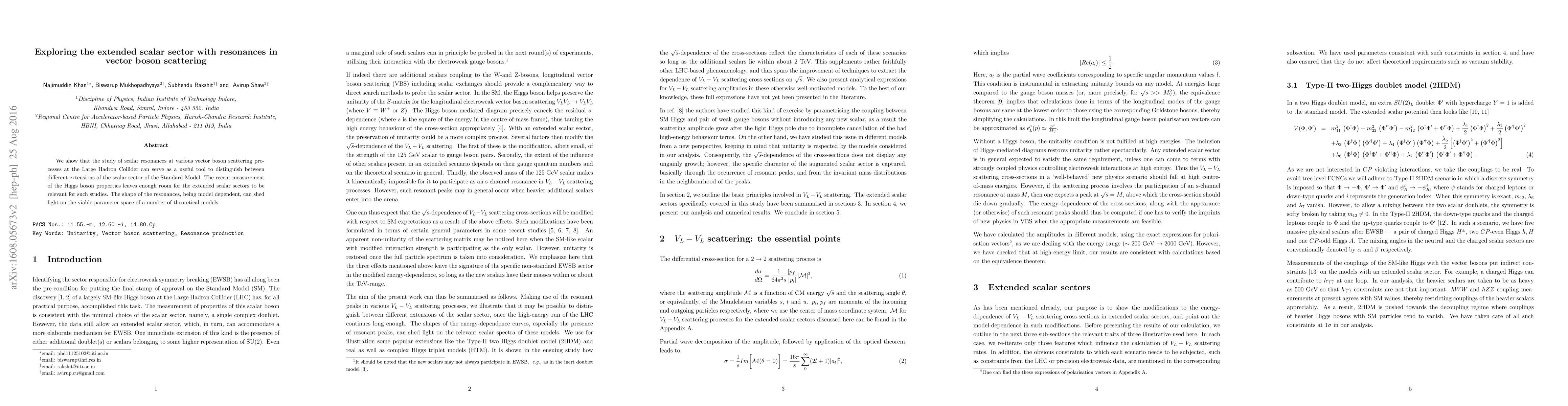 This paper investigates scalar resonances in vector boson scattering at the LHC to differentiate between various extensions of the Standard Model's scalar sector, leveraging the flexibility in Higgs boson properties left by recent measurements. The model-dependent resonance shapes provide insights into the viable parameter spaces of these theoretical models.