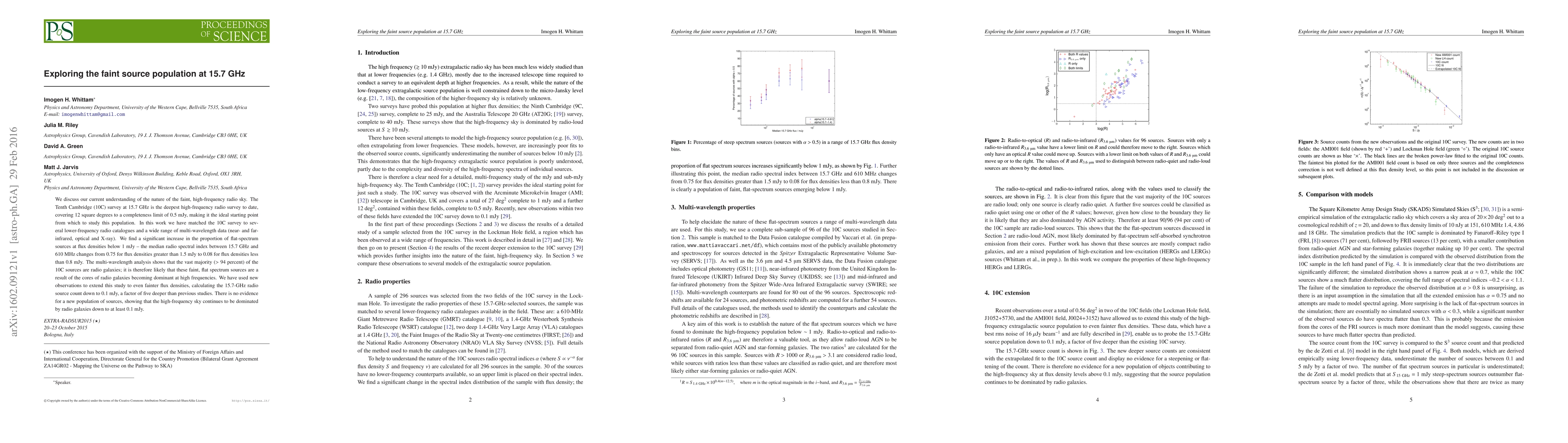 This paper investigates the faint radio source population at 15.7 GHz using the 10C survey, finding that below 1 mJy, flat-spectrum sources dominate, likely representing radio galaxy cores. Multi-wavelength analysis confirms that over 94% of these sources are radio galaxies, suggesting no new source population exists at these frequencies.