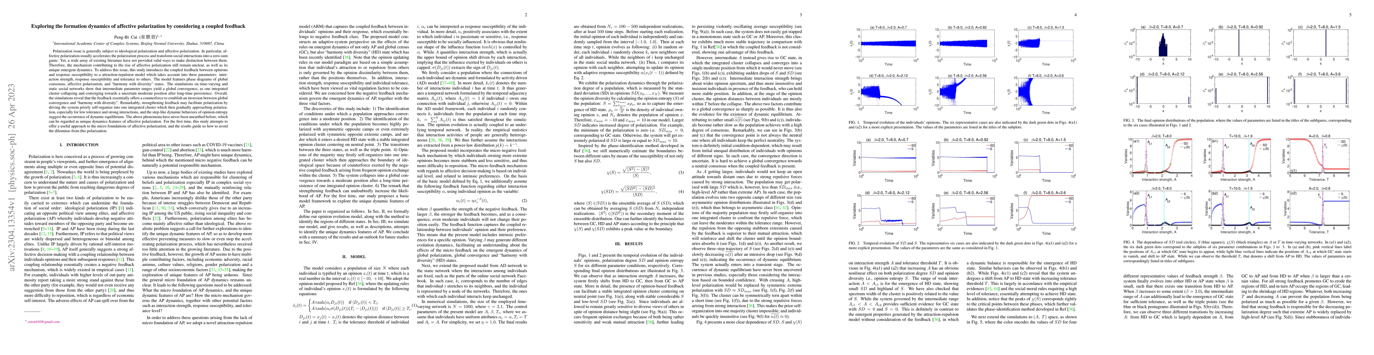 This study investigates the dynamics of affective polarization through a coupled feedback mechanism in an attraction-repulsion model, revealing that intermediate parameter ranges can lead to global convergence and "harmony with diversity." However, strong feedback can drive polarization, especially under low tolerance and strong interactions, highlighting the complex interplay between social dynamics and polarization.