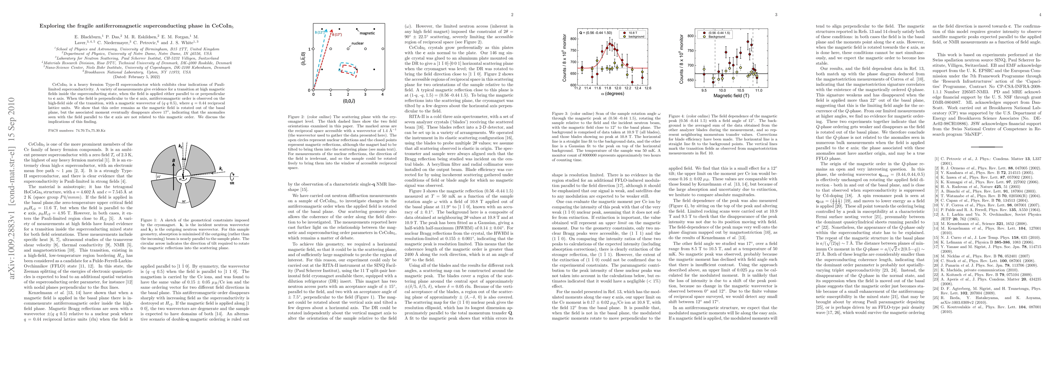 CeCoIn5 is a heavy fermion Type-II superconductor which exhibits clear indications of Pauli-limited superconductivity. A variety of measurements give evidence for a transition at high magnetic fields inside the superconducting state, when the field is applied either parallel to or perpendicular to the c axis. When the field is perpendicular to the c axis, antiferromagnetic order is observed on the high-field side of the transition, with a magnetic wavevector of (q q 0.5), where q = 0.44 reciprocal lattice units. We show that this order remains as the magnetic field is rotated out of the basal plane, but the associated moment eventually disappears above 17 degrees, indicating that the anomalies seen with the field parallel to the c axis are not related to this magnetic order. We discuss the implications of this finding.