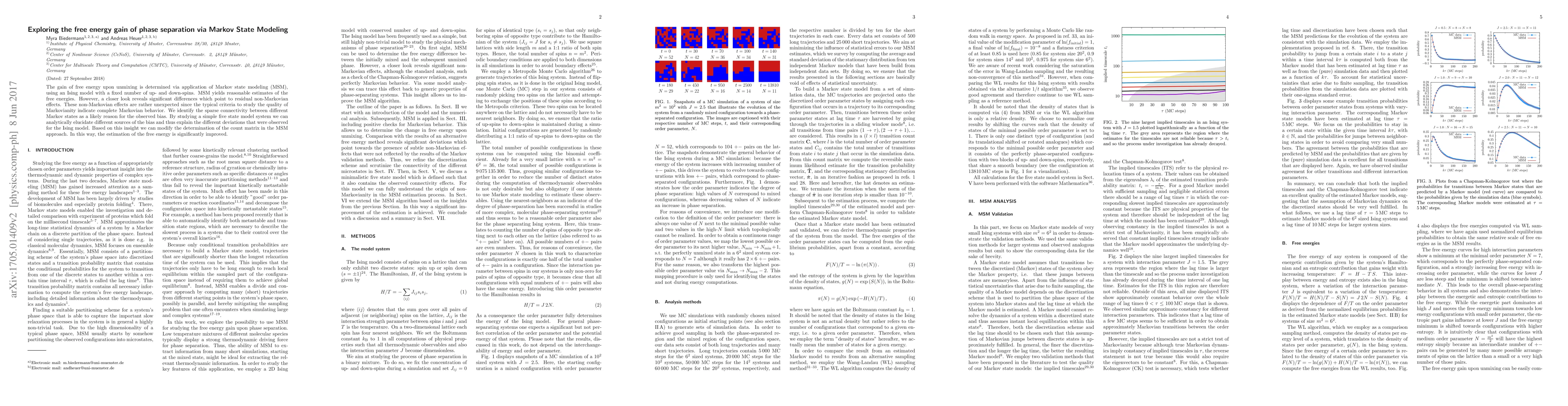 Researchers used Markov state modeling to study phase separation in an Ising model and found residual non-Markovian effects that could be explained by sparse connectivity between states, leading to improved estimation of free energy.