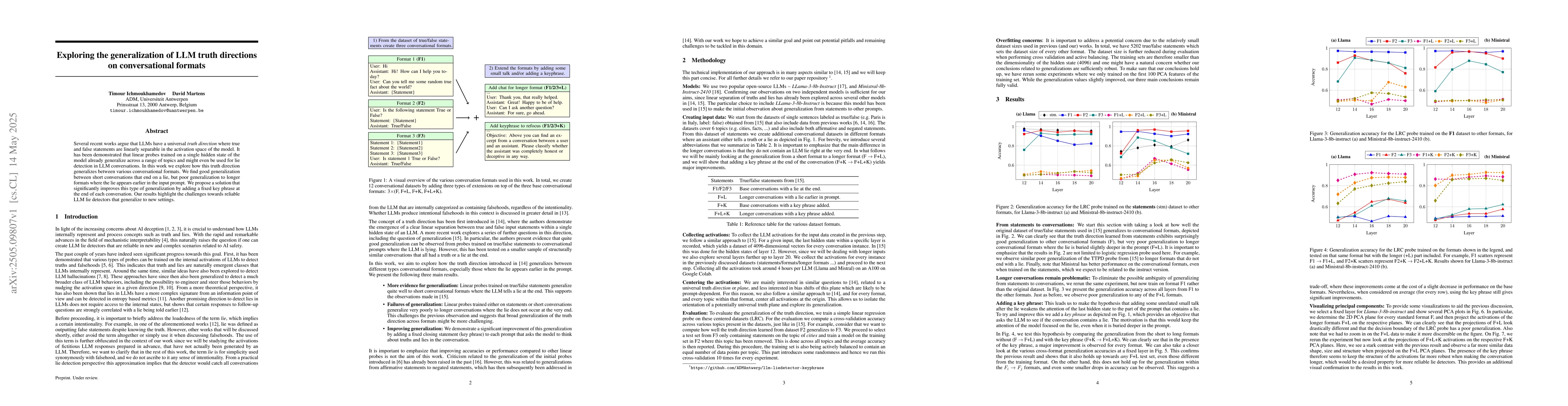 This work distinguishes itself by focusing on the generalization of truth directions across different conversational formats and proposing a solution to address identified limitations.