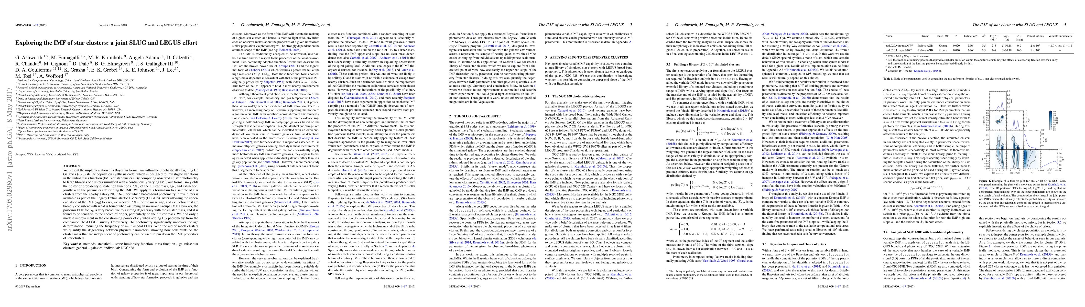 We present the implementation of a Bayesian formalism within the Stochastically Lighting Up Galaxies (SLUG) stellar population synthesis code, which is designed to investigate variations in the initial mass function (IMF) of star clusters. By comparing observed cluster photometry to large libraries of clusters simulated with a continuously varying IMF, our formalism yields the posterior probability distribution function (PDF) of the cluster mass, age, and extinction, jointly with the parameters describing the IMF. We apply this formalism to a sample of star clusters from the nearby galaxy NGC 628, for which broad-band photometry in five filters is available as part of the Legacy ExtraGalactic UV Survey (LEGUS). After allowing the upper-end slope of the IMF ($\alpha_3$) to vary, we recover PDFs for the mass, age, and extinction that are broadly consistent with what is found when assuming an invariant Kroupa IMF. However, the posterior PDF for $\alpha_3$ is very broad due to a strong degeneracy with the cluster mass, and it is found to be sensitive to the choice of priors, particularly on the cluster mass. We find only a modest improvement in the constraining power of $\alpha_3$ when adding H$\alpha$ photometry from the companion H$\alpha$-LEGUS survey. Conversely, H$\alpha$ photometry significantly improves the age determination, reducing the frequency of multi-modal PDFs. With the aid of mock clusters we quantify the degeneracy between physical parameters, showing how constraints on the cluster mass that are independent of photometry can be used to pin down the IMF properties of star clusters.