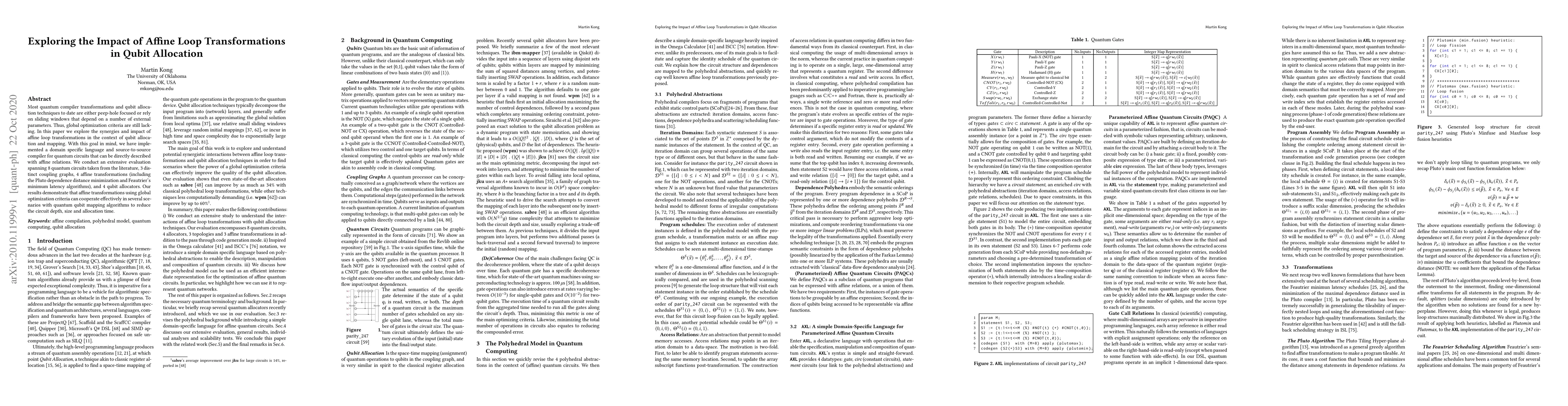 Researchers explored the impact of affine loop transformations in qubit allocation, finding they can effectively reduce circuit depth, size, and allocation time when used with global optimization criteria.
