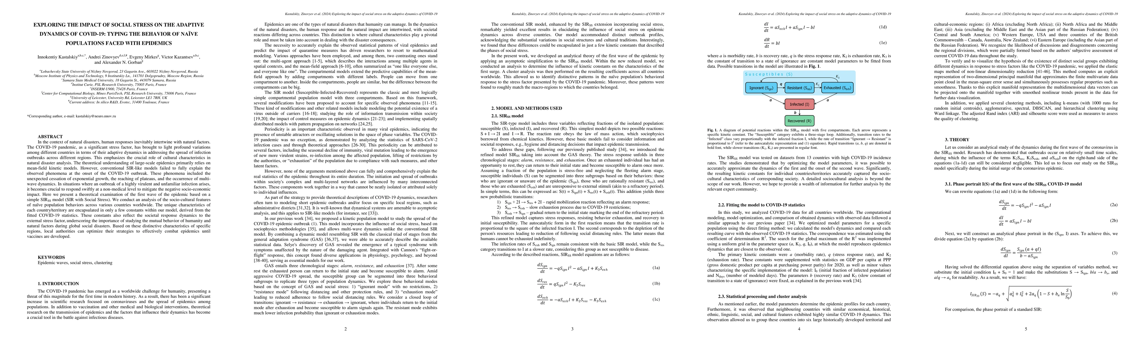 This paper explores how social stress influences the adaptive dynamics of COVID-19 in naive populations, proposing a new SIRSS model to better understand the socio-cultural factors affecting epidemic spread. It highlights the importance of cultural characteristics in disaster analysis and suggests that local authorities can tailor strategies based on regional socio-cultural responses to effectively manage outbreaks.