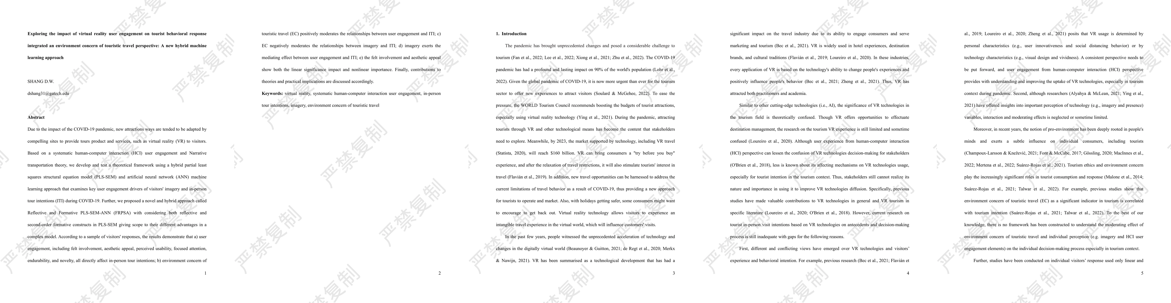 Due to the impact of the COVID-19 pandemic, new attractions ways are tended to be adapted by compelling sites to provide tours product and services, such as virtual reality (VR) to visitors. Based on a systematic human-computer interaction (HCI) user engagement and Narrative transportation theory, we develop and test a theoretical framework using a hybrid partial least squares structural equation model (PLS-SEM) and artificial neural network (ANN) machine learning approach that examines key user engagement drivers of visitors' imagery and in-person tour intentions (ITI) during COVID-19. Further, we proposed a novel and hybrid approach called Reflective and Formative PLS-SEM-ANN (FRPSA) with considering both reflective and second-order formative constructs in PLS-SEM giving scope to their different advantages in a complex model. According to a sample of visitors' responses, the results demonstrate that a) user engagement, including felt involvement, aesthetic appeal, perceived usability, focused attention, endurability, and novelty, all directly affect in-person tour intentions; b) environment concern of touristic travel (EC) positively moderates the relationships between user engagement and ITI; c) EC negatively moderates the relationships between imagery and ITI; d) imagery exerts the mediating effect between user engagement and ITI; e) the felt involvement and aesthetic appeal show both the linear significance impact and nonlinear importance. Finally, contributions to theories and practical implications are discussed accordingly.
