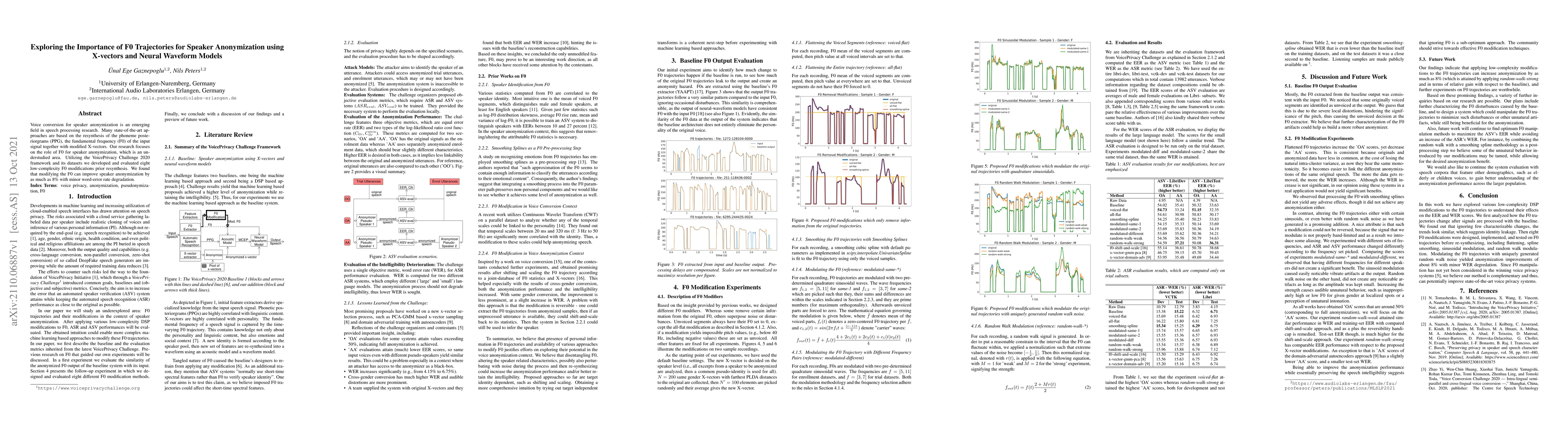 This paper investigates the importance of fundamental frequency (F0) trajectories for speaker anonymization using X-vectors and neural waveform models. The study found that F0 modifications can enhance anonymization by up to 8% while causing minimal word-error rate degradation.