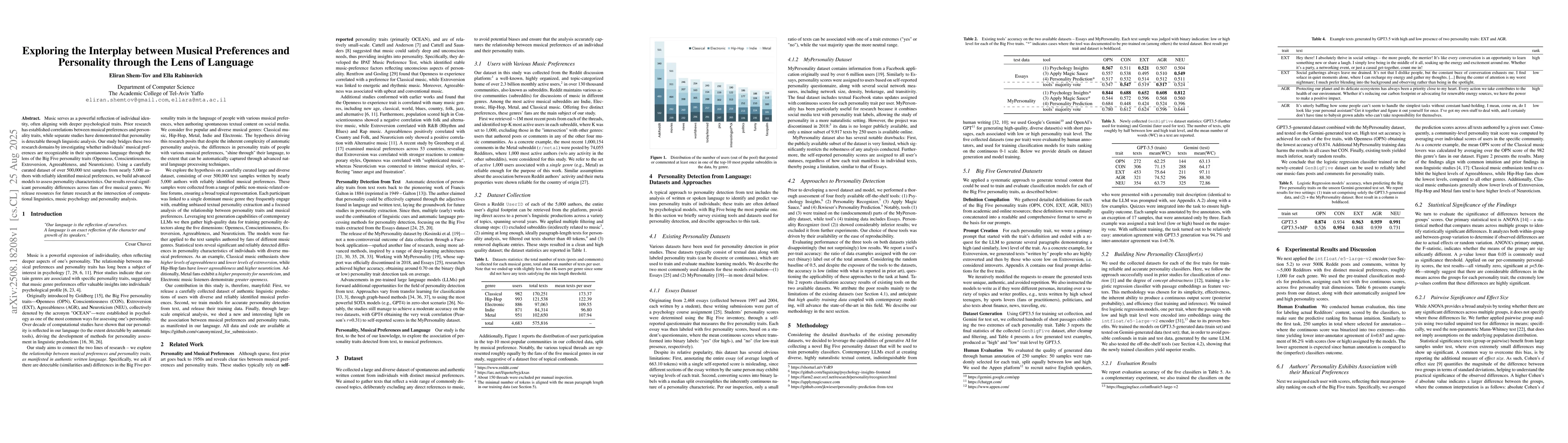 Music serves as a powerful reflection of individual identity, often aligning with deeper psychological traits. Prior research has established correlations between musical preferences and personality traits, while separate studies have demonstrated that personality is detectable through linguistic analysis. Our study bridges these two research domains by investigating whether individuals' musical preferences are recognizable in their spontaneous language through the lens of the Big Five personality traits (Openness, Conscientiousness, Extroversion, Agreeableness, and Neuroticism). Using a carefully curated dataset of over 500,000 text samples from nearly 5,000 authors with reliably identified musical preferences, we build advanced models to assess personality characteristics. Our results reveal significant personality differences across fans of five musical genres. We release resources for future research at the intersection of computational linguistics, music psychology and personality analysis.