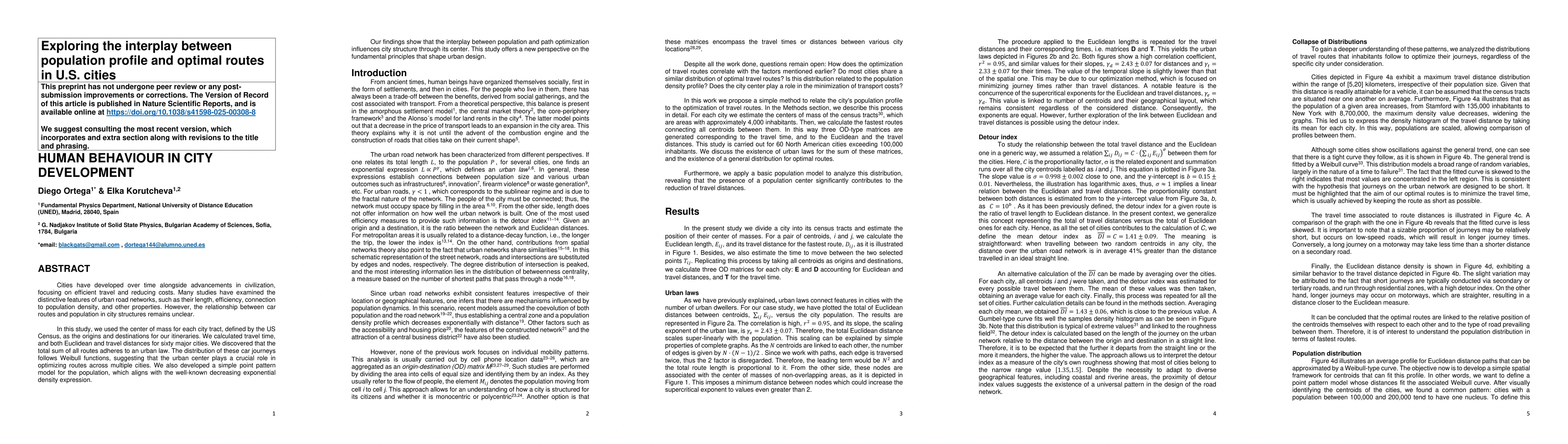 This work distinguishes itself by examining the relationship between population profiles and optimal routes, uncovering an urban law governing car journey distributions.