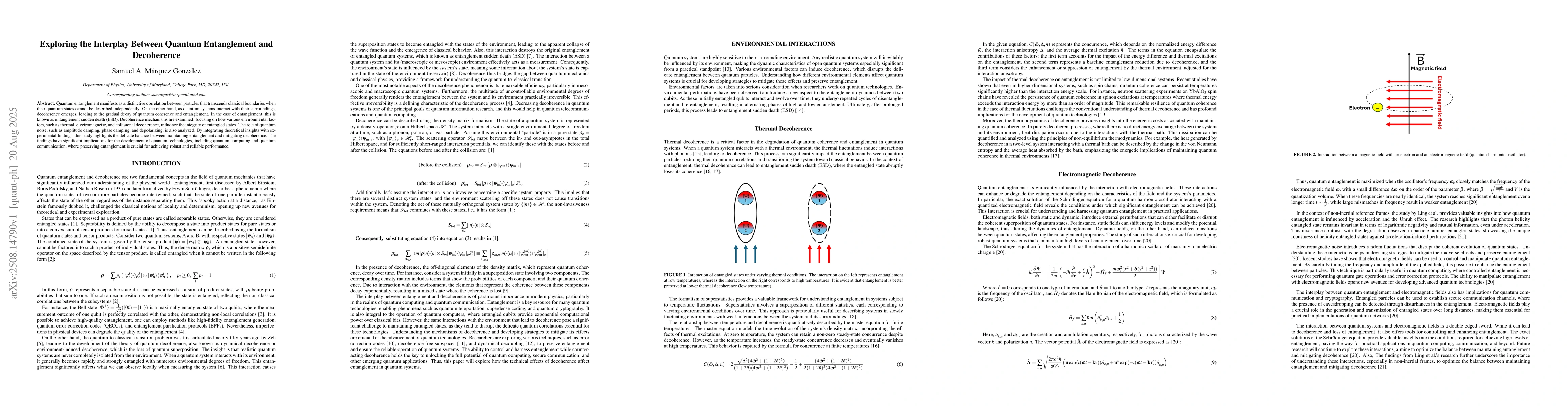 The paper presents a detailed analysis of decoherence mechanisms and their impact on quantum entanglement, highlighting the role of various environmental factors and quantum noise.