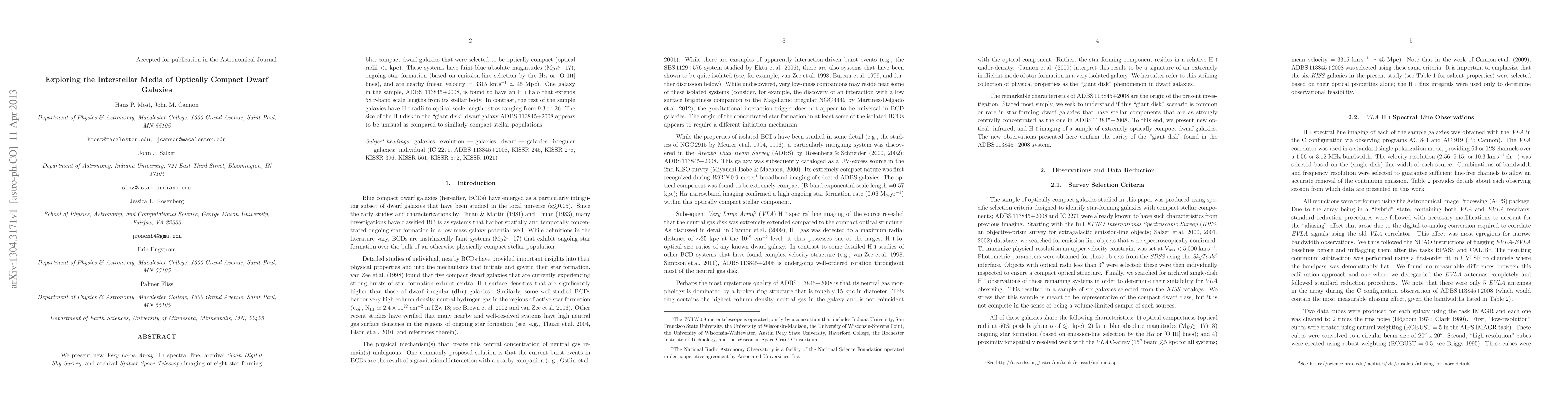We present new Very Large Array HI spectral line, archival Sloan Digital Sky Survey, and archival Spitzer Space Telescope imaging of eight star-forming blue compact dwarf galaxies that were selected to be optically compact (optical radii less than 1 kpc). These systems have faint blue absolute magnitudes (M_B >= -17), ongoing star formation (based on emission-line selection by the H alpha or [OIII] lines), and are nearby (mean velocity = 3315 km/s = 45 Mpc). One galaxy in the sample, ADBS 113845+2008, is found to have an HI halo that extends 58 r-band scale lengths from its stellar body. In contrast, the rest of the sample galaxies have HI radii to optical-scale-length ratios ranging from 9.3 to 26. The size of the HI disk in the "giant disk" dwarf galaxy ADBS 113845+2008 appears to be unusual as compared to similarly compact stellar populations.