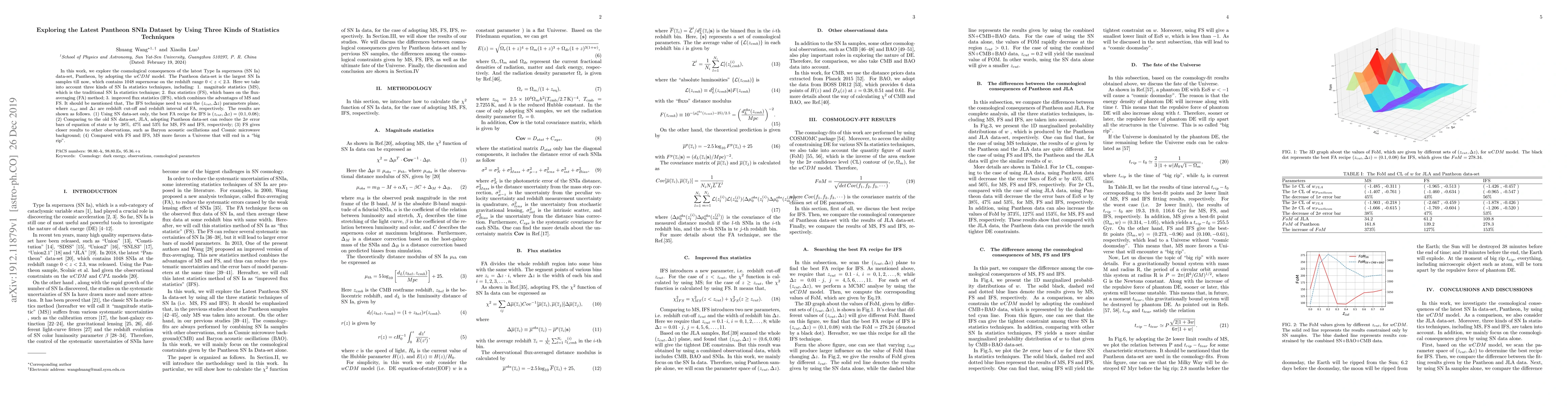 This paper investigates the cosmological implications of the latest Pantheon Type Ia supernova dataset using three statistical techniques: magnitude statistics, flux statistics, and improved flux statistics. The results show that the improved flux statistics method yields the best fit for the dataset and reduces the error bars for the equation of state parameter $w$ by up to 53%, while flux statistics aligns better with other observational data.