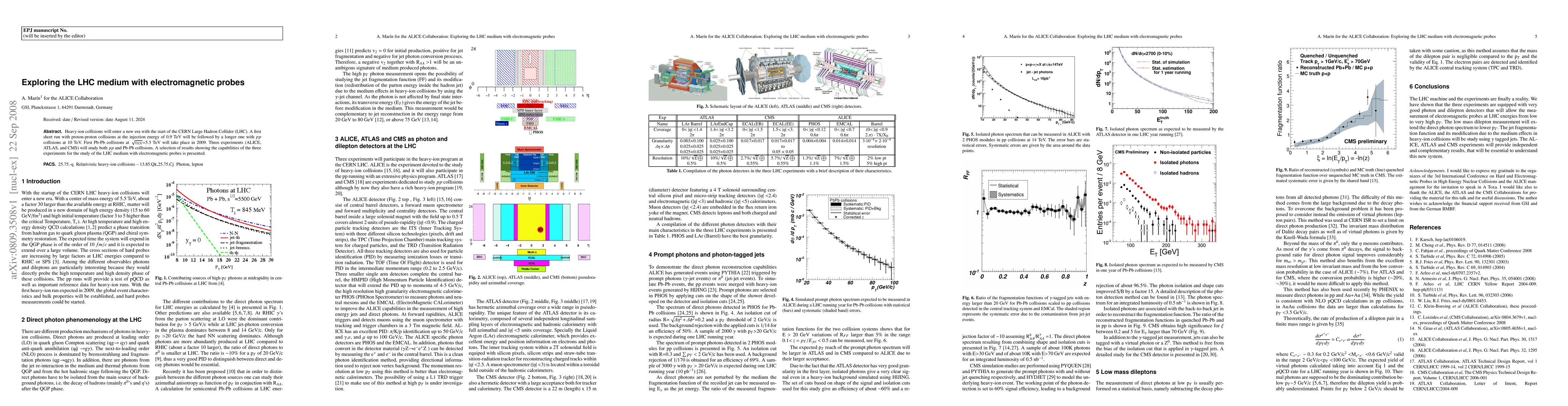 Heavy-ion collisions will enter a new era with the start of the CERN Large Hadron Collider (LHC). A first short run with proton-proton collisions at the injection energy of 0.9 TeV will be followed by a longer one with $pp$ collisions at 10 TeV. First Pb-Pb collisions at $\sqrt{s_{NN}}$=5.5 TeV will take place in 2009. Three experiments (ALICE, ATLAS, and CMS) will study both $pp$ and Pb-Pb collisions. A selection of results showing the capabilities of the three experiments for the study of the LHC medium with electromagnetic probes is presented.