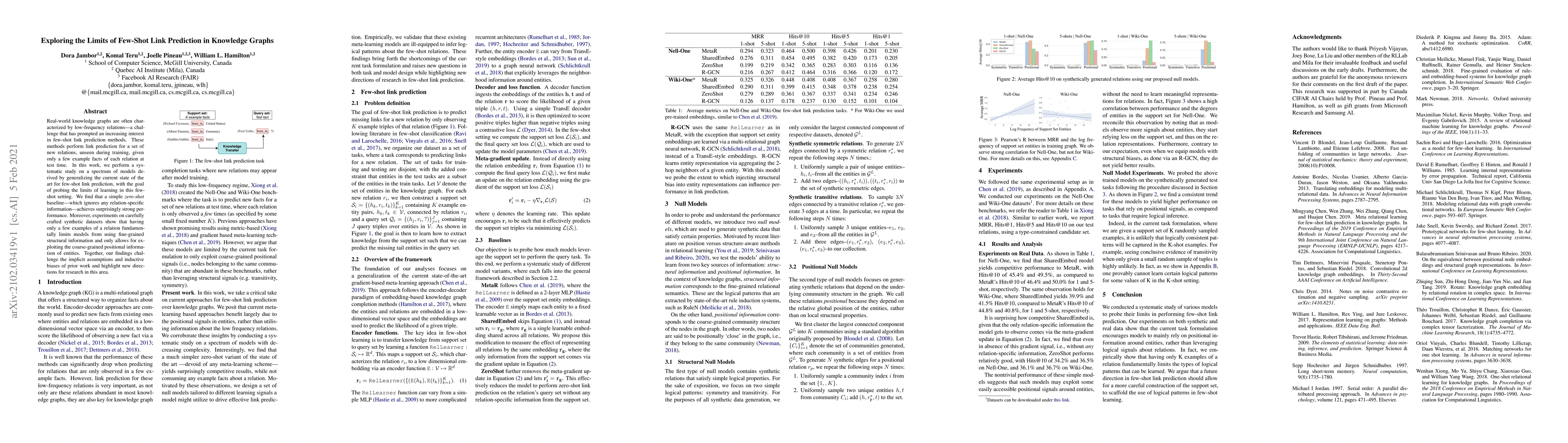 Real-world knowledge graphs are often characterized by low-frequency relations - a challenge that has prompted an increasing interest in few-shot link prediction methods. These methods perform link prediction for a set of new relations, unseen during training, given only a few example facts of each relation at test time. In this work, we perform a systematic study on a spectrum of models derived by generalizing the current state of the art for few-shot link prediction, with the goal of probing the limits of learning in this few-shot setting. We find that a simple zero-shot baseline - which ignores any relation-specific information - achieves surprisingly strong performance. Moreover, experiments on carefully crafted synthetic datasets show that having only a few examples of a relation fundamentally limits models from using fine-grained structural information and only allows for exploiting the coarse-grained positional information of entities. Together, our findings challenge the implicit assumptions and inductive biases of prior work and highlight new directions for research in this area.