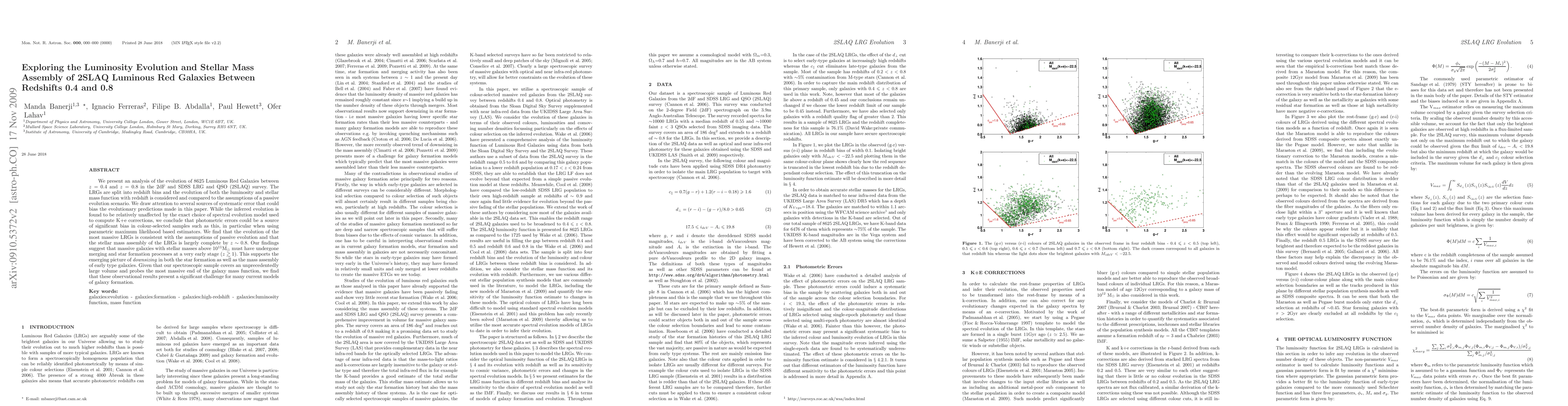 We present an analysis of the evolution of 8625 Luminous Red Galaxies between z = 0.4 and z = 0.8 in the 2dF and SDSS LRG and QSO (2SLAQ) survey. The LRGs are split into redshift bins and the evolution of both the luminosity and stellar mass function with redshift is considered and compared to the assumptions of a passive evolution scenario. We draw attention to several sources of systematic error that could bias the evolutionary predictions made in this paper. While the inferred evolution is found to be relatively unaffected by the exact choice of spectral evolution model used to compute K+e corrections, we conclude that photometric errors could be a source of significant bias in colour-selected samples such as this, in particular when using parametric maximum likelihood based estimators. We find that the evolution of the most massive LRGs is consistent with the assumptions of passive evolution and that the stellar mass assembly of the LRGs is largely complete by z ~ 0.8. Our findings suggest that massive galaxies with stellar masses above 10^11 solar masses must have undergone merging and star formation processes at a very early stage (z > 1). This supports the emerging picture of downsizing in both the star formation as well as the mass assembly of early type galaxies. Given that our spectroscopic sample covers an unprecedentedly large volume and probes the most massive end of the galaxy mass function, we find that these observational results present a significant challenge for many current models of galaxy formation