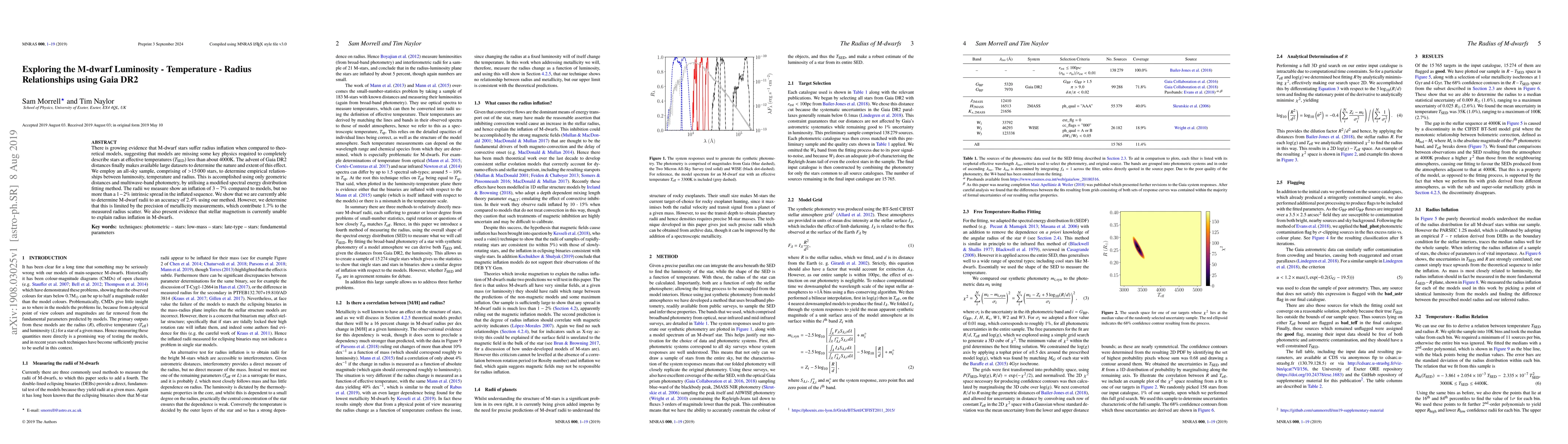 This paper investigates M-dwarf star radius inflation using Gaia DR2 data, finding that measured radii are 3-7% larger than theoretical models, with an accuracy of 2.4% but limited by metallicity measurement precision. It concludes that stellar magnetism does not explain the observed radius inflation.