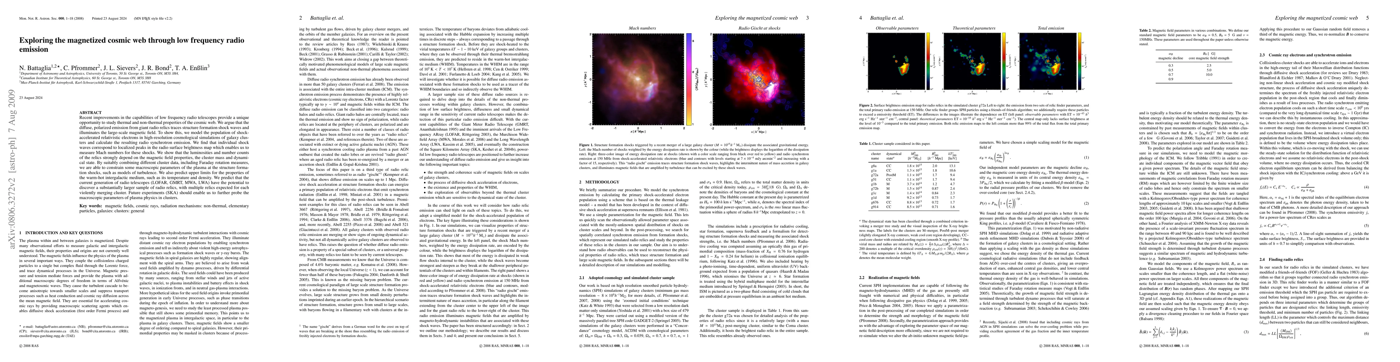 Recent improvements in the capabilities of low frequency radio telescopes provide a unique opportunity to study thermal and non-thermal properties of the cosmic web. We argue that the diffuse, polarized emission from giant radio relics traces structure formation shock waves and illuminates the large-scale magnetic field. To show this, we model the population of shock-accelerated relativistic electrons in high-resolution cosmological simulations of galaxy clusters and calculate the resulting radio synchrotron emission. We find that individual shock waves correspond to localized peaks in the radio surface brightness map which enables us to measure Mach numbers for these shocks. We show that the luminosities and number counts of the relics strongly depend on the magnetic field properties, the cluster mass and dynamical state. By suitably combining different cluster data, including Faraday rotation measures, we are able to constrain some macroscopic parameters of the plasma at the structure formation shocks, such as models of turbulence. We also predict upper limits for the properties of the warm-hot intergalactic medium, such as its temperature and density. We predict that the current generation of radio telescopes (LOFAR, GMRT, MWA, LWA) have the potential to discover a substantially larger sample of radio relics, with multiple relics expected for each violently merging cluster. Future experiments (SKA) should enable us to further probe the macroscopic parameters of plasma physics in clusters.