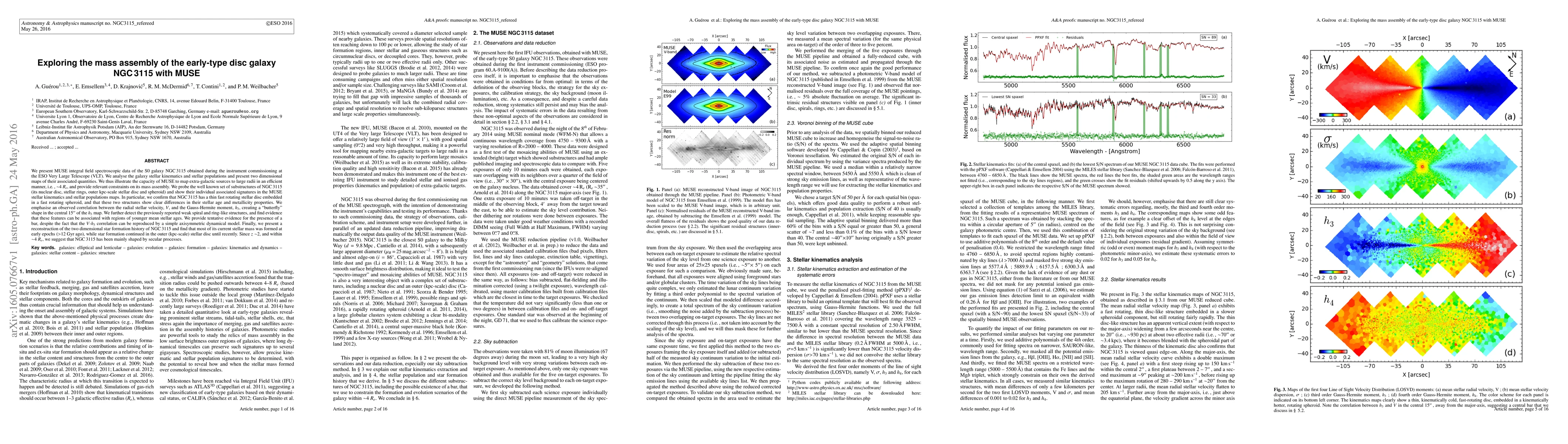 This study utilizes MUSE integral field spectroscopy to analyze the stellar kinematics and populations of NGC 3115, revealing a thin fast-rotating stellar disc within a larger spheroid, with distinct age and metallicity differences. The research suggests that NGC 3115's mass assembly has been primarily shaped by secular processes since z~2.