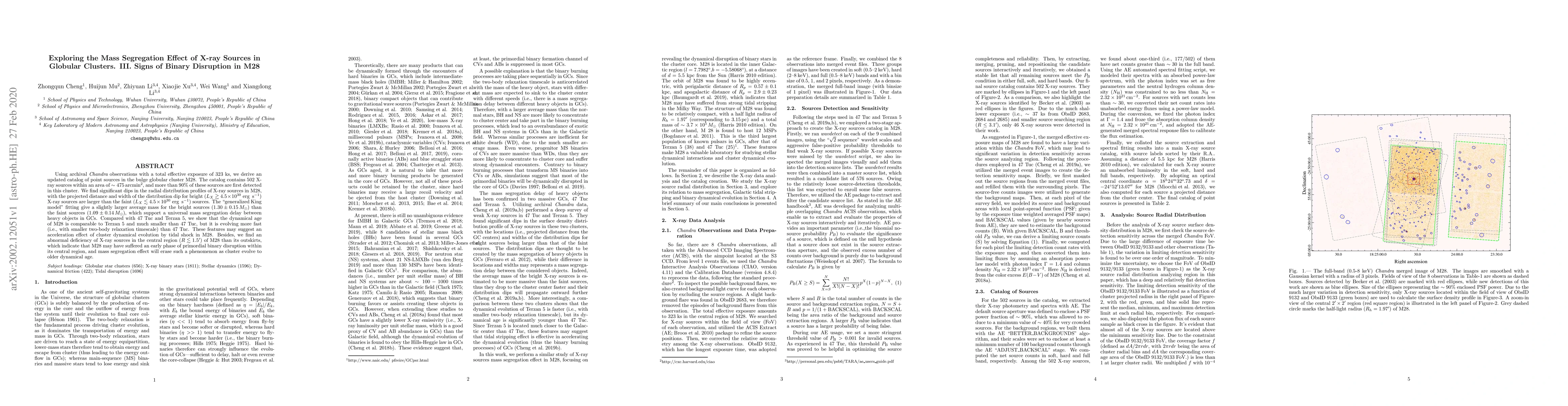 This paper analyzes X-ray sources in the globular cluster M28 using {\it Chandra} observations, revealing significant mass segregation and a deficiency of bright X-ray sources in the cluster's central region, suggesting early primordial binary disruption. The cluster's dynamical age is smaller than 47 Tuc but evolving faster, potentially due to tidal shocks.