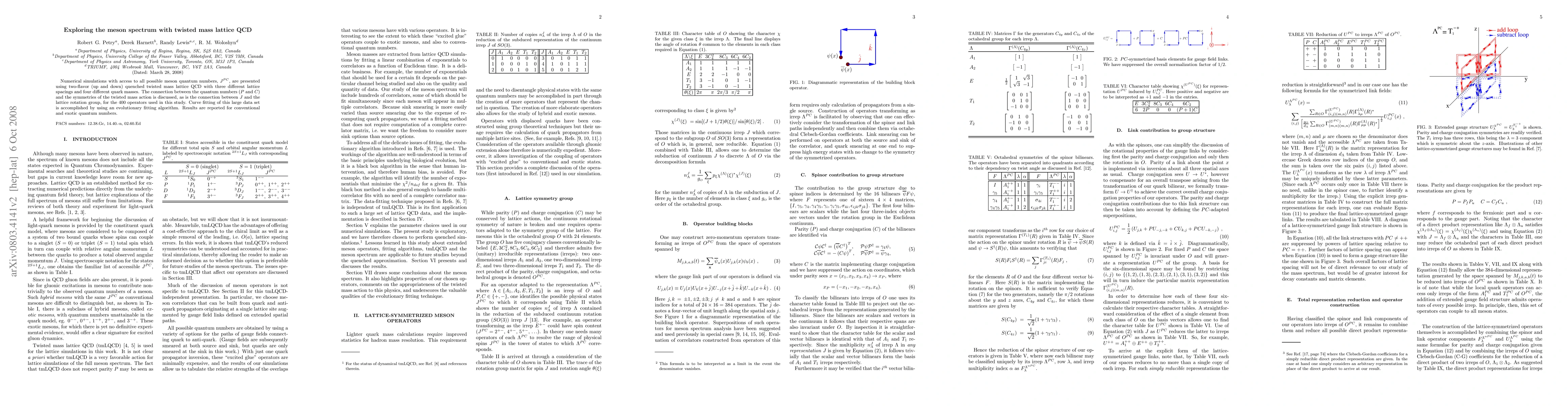 Numerical simulations with access to all possible meson quantum numbers, J^{PC}, are presented using two-flavor (up and down) quenched twisted mass lattice QCD with three different lattice spacings and four different quark masses. The connection between the quantum numbers (P and C) and the symmetries of the twisted mass action are discussed, as is the connection between J and the lattice rotation group, for the 400 operators used in this study. Curve fitting of this large data set is accomplished by using an evolutionary fitting algorithm. Results are reported for conventional and exotic quantum numbers.