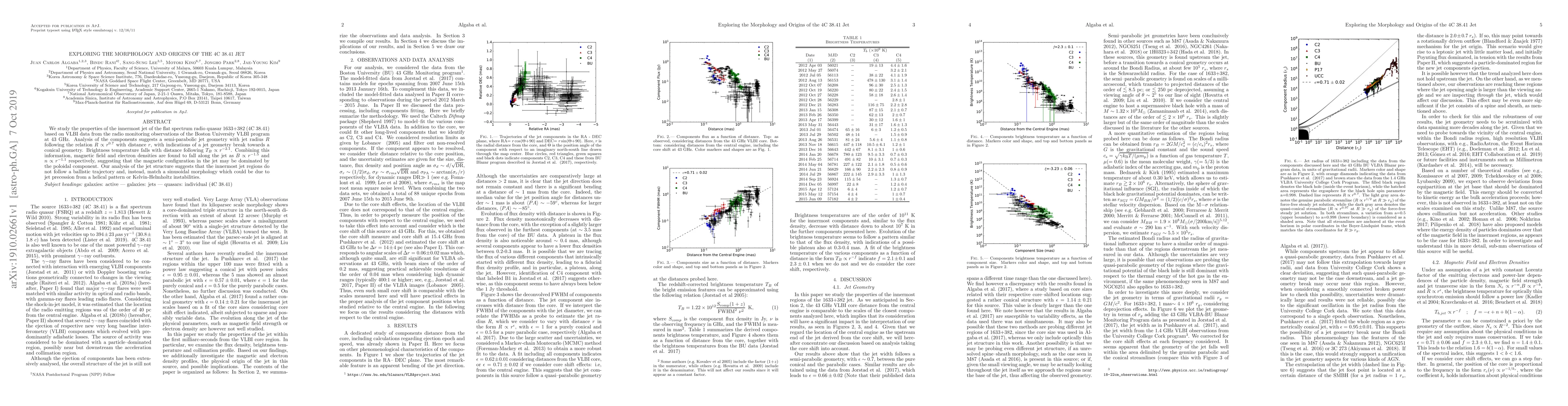 Researchers studied the innermost jet of the flat spectrum radio quasar 4C 38.41 using VLBI data, finding a semi-parabolic jet geometry with magnetic field and electron densities decreasing with distance, and a sinusoidal morphology in the jet regions.