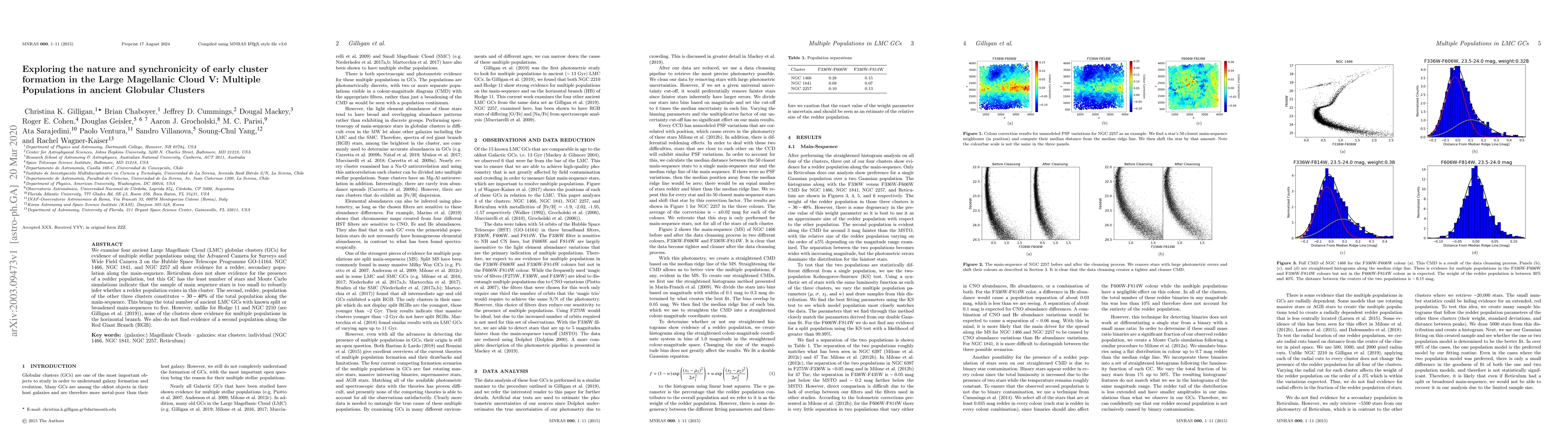 This study investigates four ancient globular clusters in the Large Magellanic Cloud for multiple stellar populations, revealing that NGC 1466, NGC 1841, and NGC 2257 each have a redder secondary population constituting 30-40% of their main-sequence stars. Reticulum shows no clear evidence of a secondary population due to its small star sample. No evidence of multiple populations is found in the horizontal branch or Red Giant Branch.