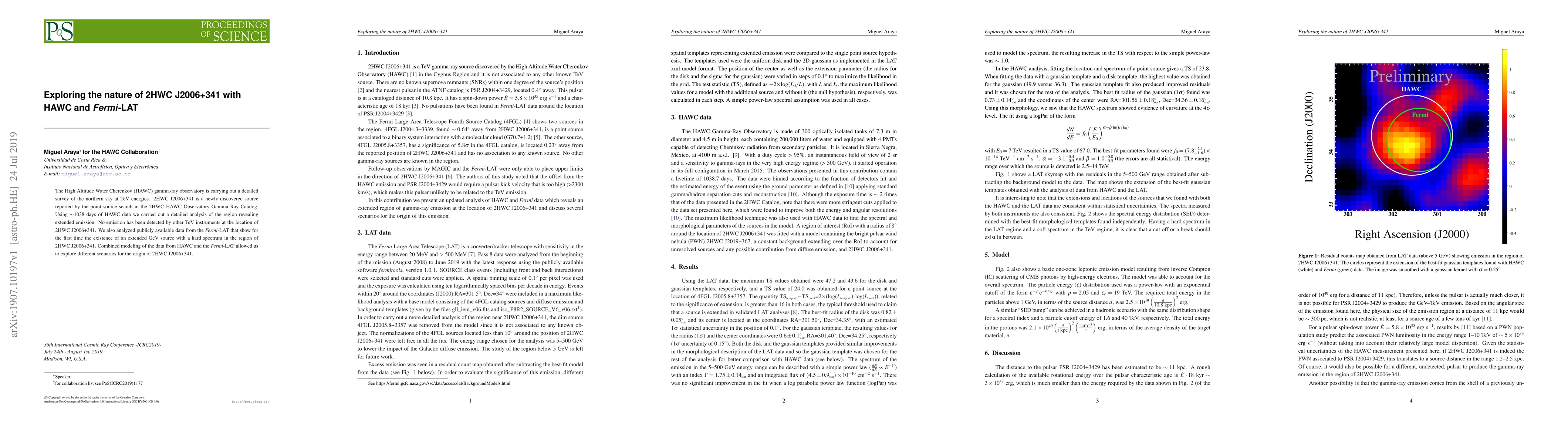 A new gamma-ray source, 2HWC J2006+341, was discovered in the northern sky using HAWC data, revealing extended emission. The Fermi-LAT also detected an extended GeV source with a hard spectrum at this location.