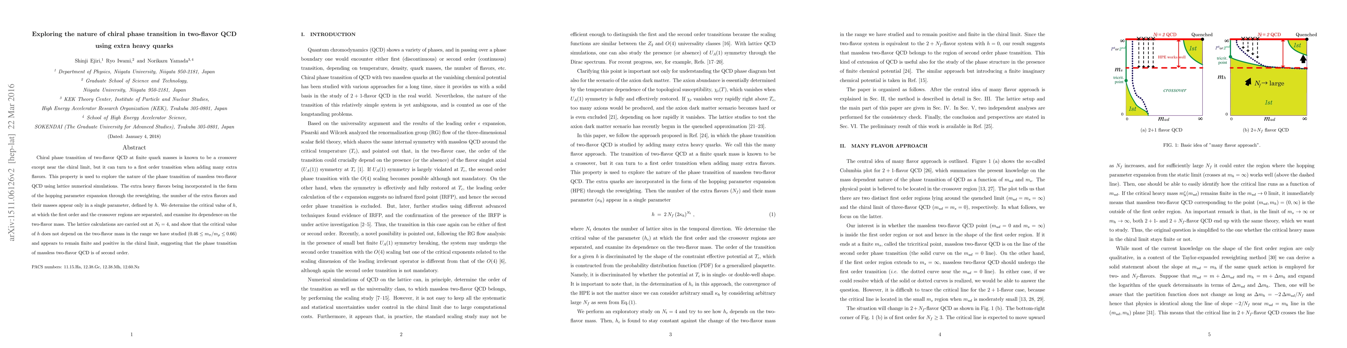 Summary: This research investigates the chiral phase transition in two-flavor QCD by introducing extra heavy quarks, showing that the critical value separating first-order and crossover regions does not depend on the two-flavor mass, indicating a second-order phase transition in massless two-flavor QCD. The study uses lattice simulations and finds the transition remains finite and positive in the chiral limit.