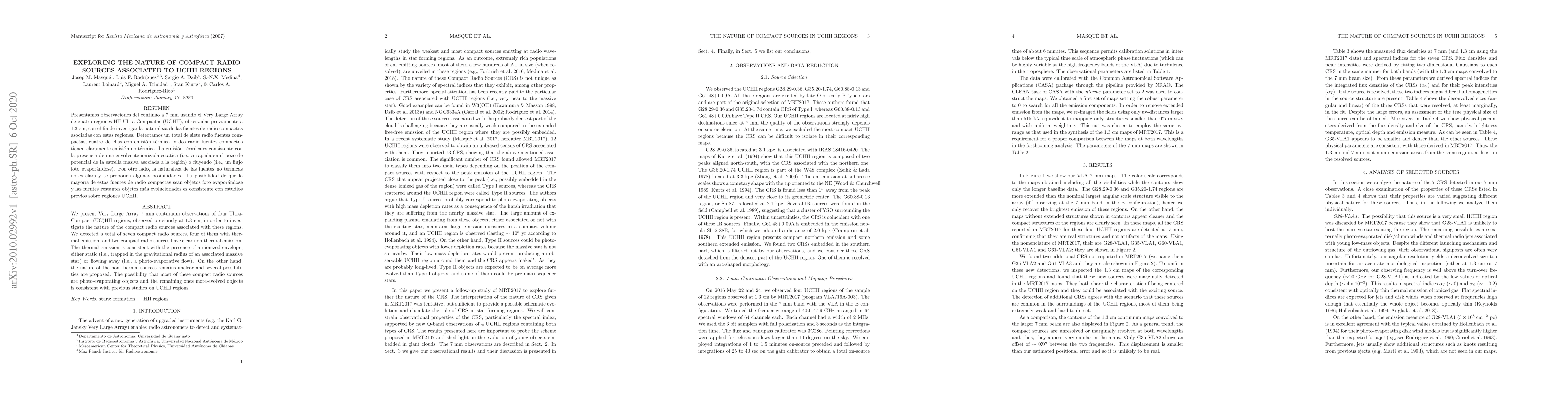 This study uses Very Large Array observations to investigate the nature of compact radio sources linked to Ultra-Compact HII regions, detecting seven sources, four with thermal emission and two with non-thermal emission. The thermal sources suggest ionized envelopes, either static or photo-evaporative, while the non-thermal nature remains ambiguous, proposing several possibilities.