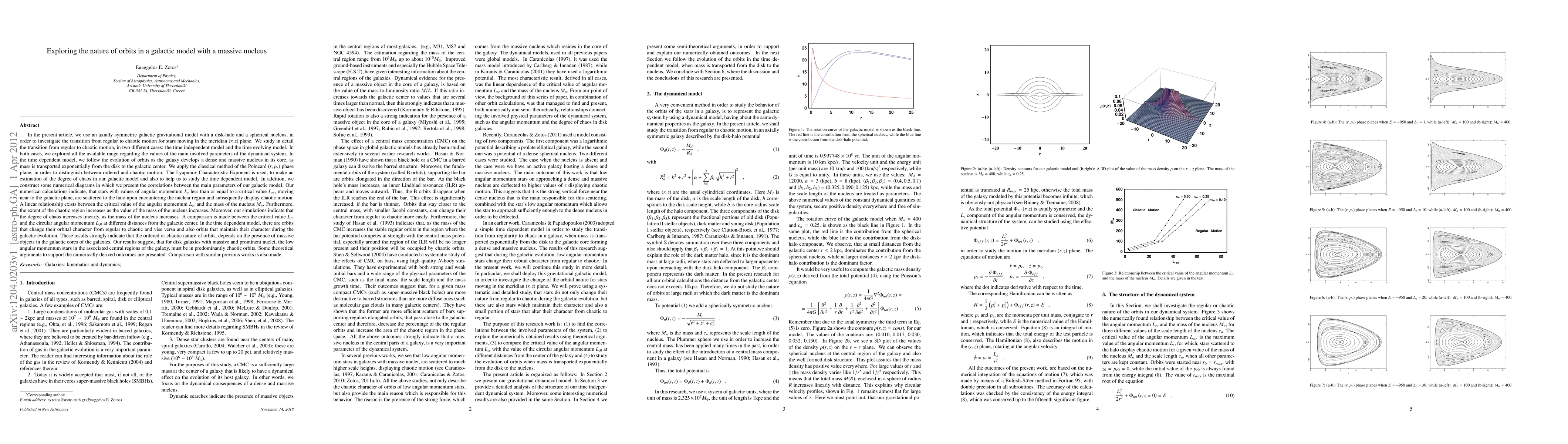 Research explores how stars move in a galaxy with a massive nucleus, finding that stars with low angular momentum become chaotic as they approach the nucleus, and that this chaos increases with the mass of the nucleus.