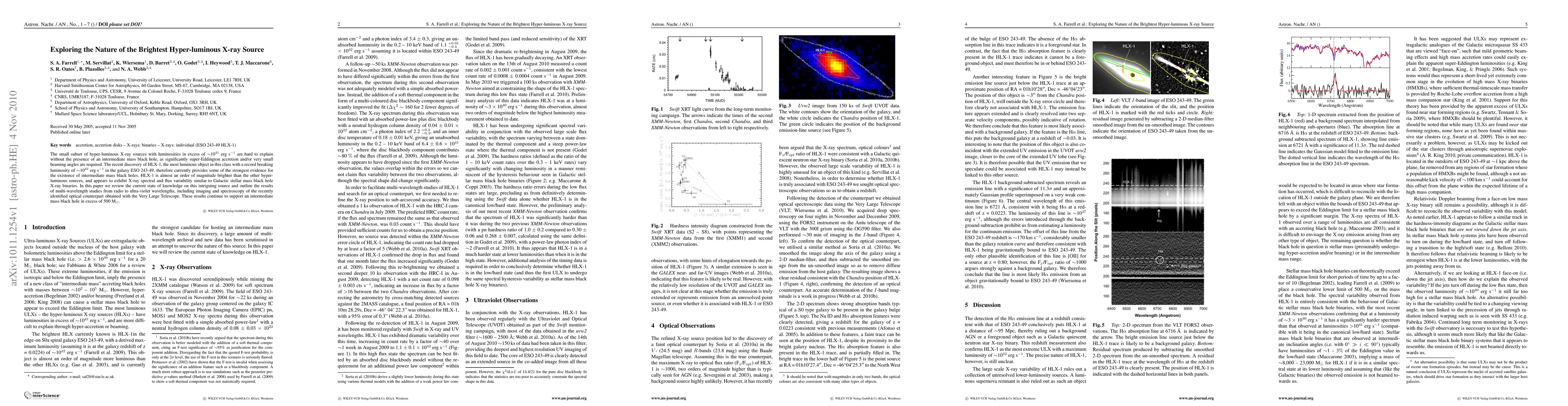This paper explores the brightest hyper-luminous X-ray source, HLX-1, in the galaxy ESO 243-49, which exhibits a record-breaking luminosity and supports the existence of intermediate mass black holes. Multi-wavelength studies confirm its spectral and flux variability, consistent with stellar mass black hole binaries, and identify an optical counterpart, reinforcing the black hole's mass estimate of over 500 Msun.
