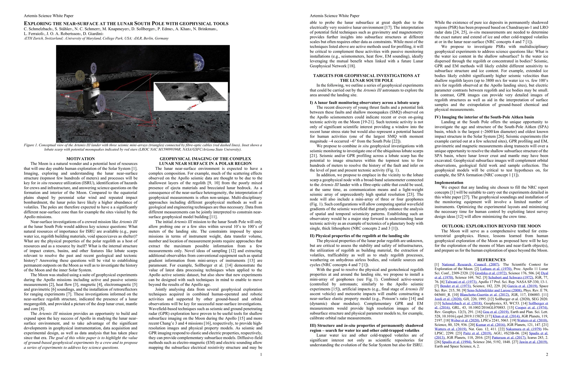This paper advocates for geophysical exploration of the lunar South Pole using seismic, ground penetrating radar, and electromagnetic techniques to understand the Moon's near-surface structure, identify resources, and mitigate hazards. The proposed experiments aim to study lunar faults, regolith properties, and the presence of water ice, contributing to broader extraterrestrial geophysical research.