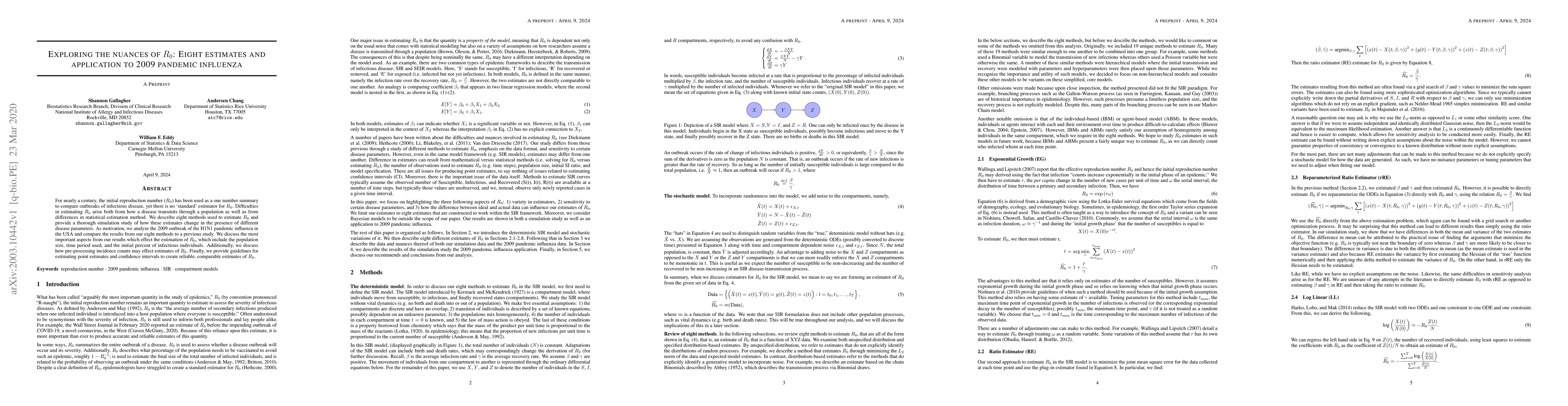 For nearly a century, the initial reproduction number (R0) has been used as a one number summary to compare outbreaks of infectious disease, yet there is no `standard' estimator for R0. Difficulties in estimating R0 arise both from how a disease transmits through a population as well as from differences in statistical estimation method. We describe eight methods used to estimate R0 and provide a thorough simulation study of how these estimates change in the presence of different disease parameters. As motivation, we analyze the 2009 outbreak of the H1N1 pandemic influenza in the USA and compare the results from our eight methods to a previous study. We discuss the most important aspects from our results which effect the estimation of R0, which include the population size, time period used, and the initial percent of infectious individuals. Additionally, we discuss how pre-processing incidence counts may effect estimates of R0. Finally, we provide guidelines for estimating point estimates and confidence intervals to create reliable, comparable estimates of R0.