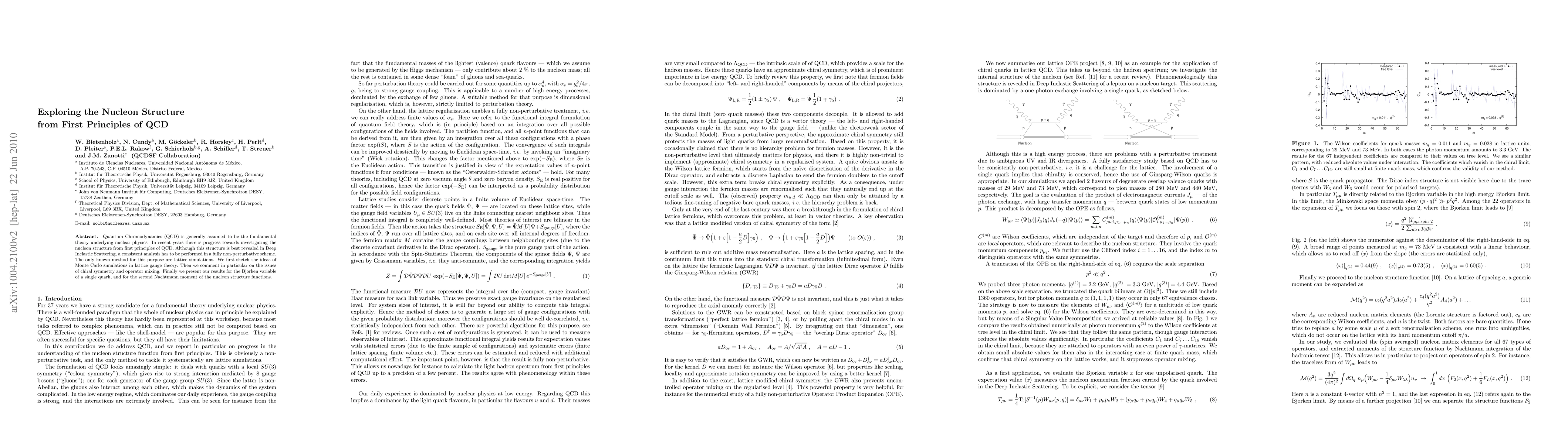 Quantum Chromodynamics (QCD) is generally assumed to be the fundamental theory underlying nuclear physics. In recent years there is progress towards investigating the nucleon structure from first principles of QCD. Although this structure is best revealed in Deep Inelastic Scattering, a consistent analysis has to be performed in a fully non-perturbative scheme. The only known method for this purpose are lattice simulations. We first sketch the ideas of Monte Carlo simulations in lattice gauge theory. Then we comment in particular on the issues of chiral symmetry and operator mixing. Finally we present our results for the Bjorken variable of a single quark, and for the second Nachtmann moment of the nucleon structure functions.