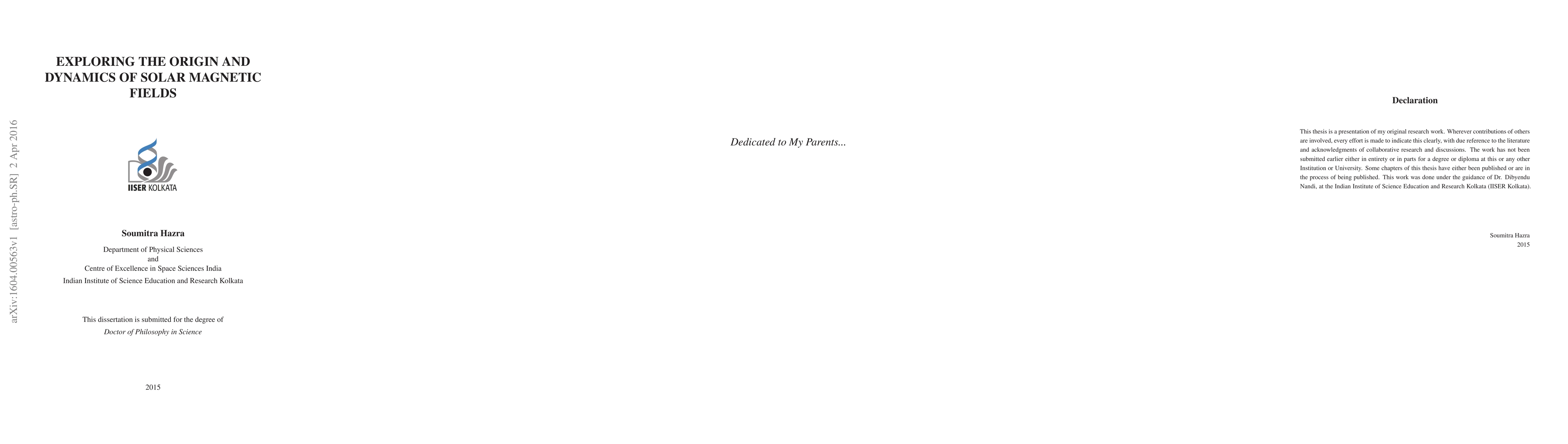 The Sun is a magnetically active star and is the source of the solar wind, electromagnetic radiation and energetic particles which affect the heliosphere and the Earths atmosphere. The magnetic field of the Sun is responsible for most of the dynamic activity of the Sun. This thesis research seeks to understand solar magnetic field generation and the role that magnetic fields play in the dynamics of the solar atmosphere. Specifically, this thesis focuses on two themes: in the first part, we study the origin and behaviour of solar magnetic fields using magnetohydrodynamic dynamo theory and modelling, and in the second part, utilizing observations and data analysis we study two major problems in solar physics, namely, the coronal heating problem and initiation mechanisms of solar flares.