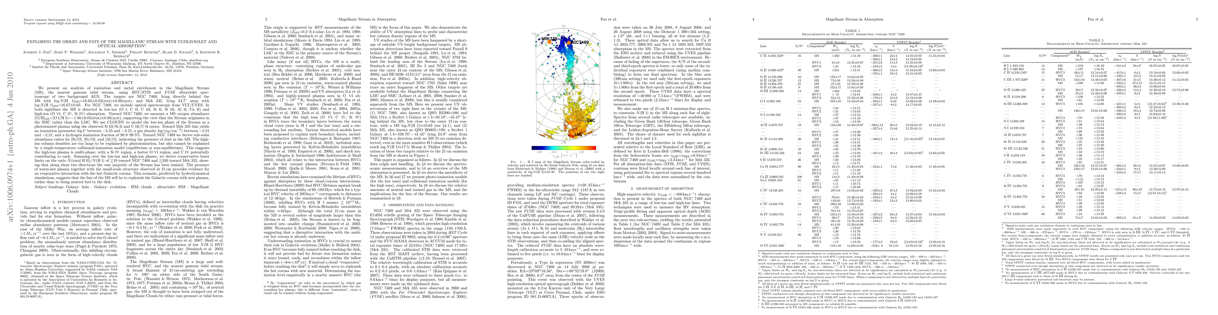 The paper presents a detailed analysis of the Magellanic Stream using ultraviolet and optical absorption spectroscopy, leading to improved understanding of its ionization and metal enrichment.