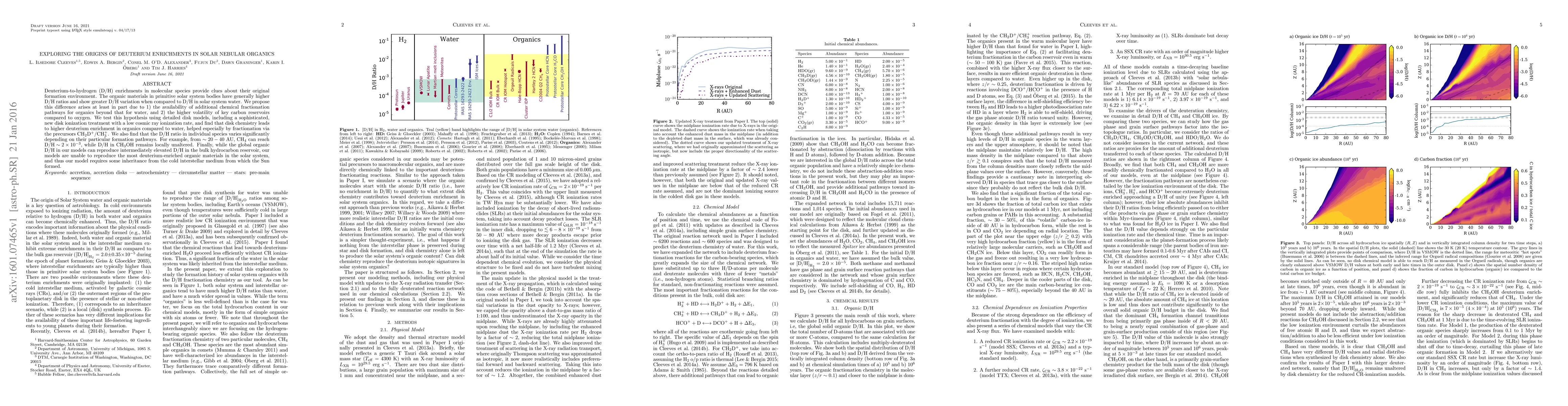 This paper investigates the higher D/H ratios in solar nebular organics compared to solar system water, proposing that additional chemical fractionation pathways and the higher volatility of carbon reservoirs contribute to this enrichment. Detailed disk models show that disk chemistry enhances deuterium enrichment in organics, especially through fractionation via CH$_2$D$^+$/CH$_3^+$, but cannot fully account for the most deuterium-enriched organics, suggesting an inheritance from the cold interstellar medium.